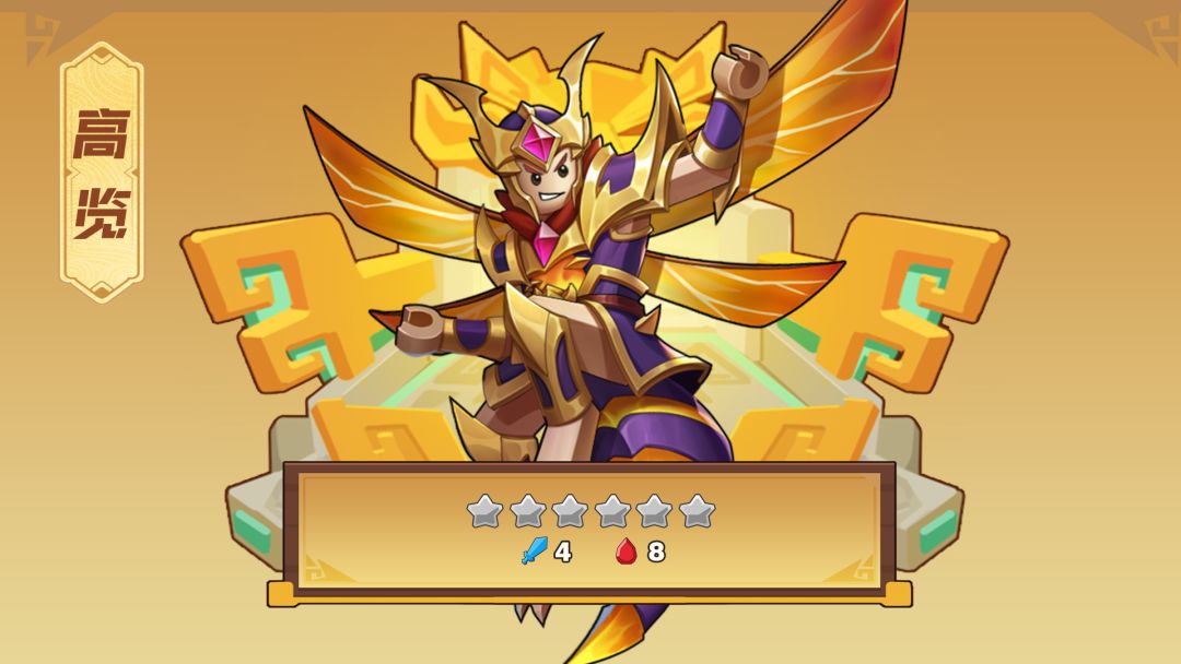 奇兵战场中的【黄金斗士】高览,能从战场飞行单位中掠夺攻击力和血量,当之无愧的空中统领,蜂群之王!升星之后还能召唤蜂群,妖蜂出击,占领战场!