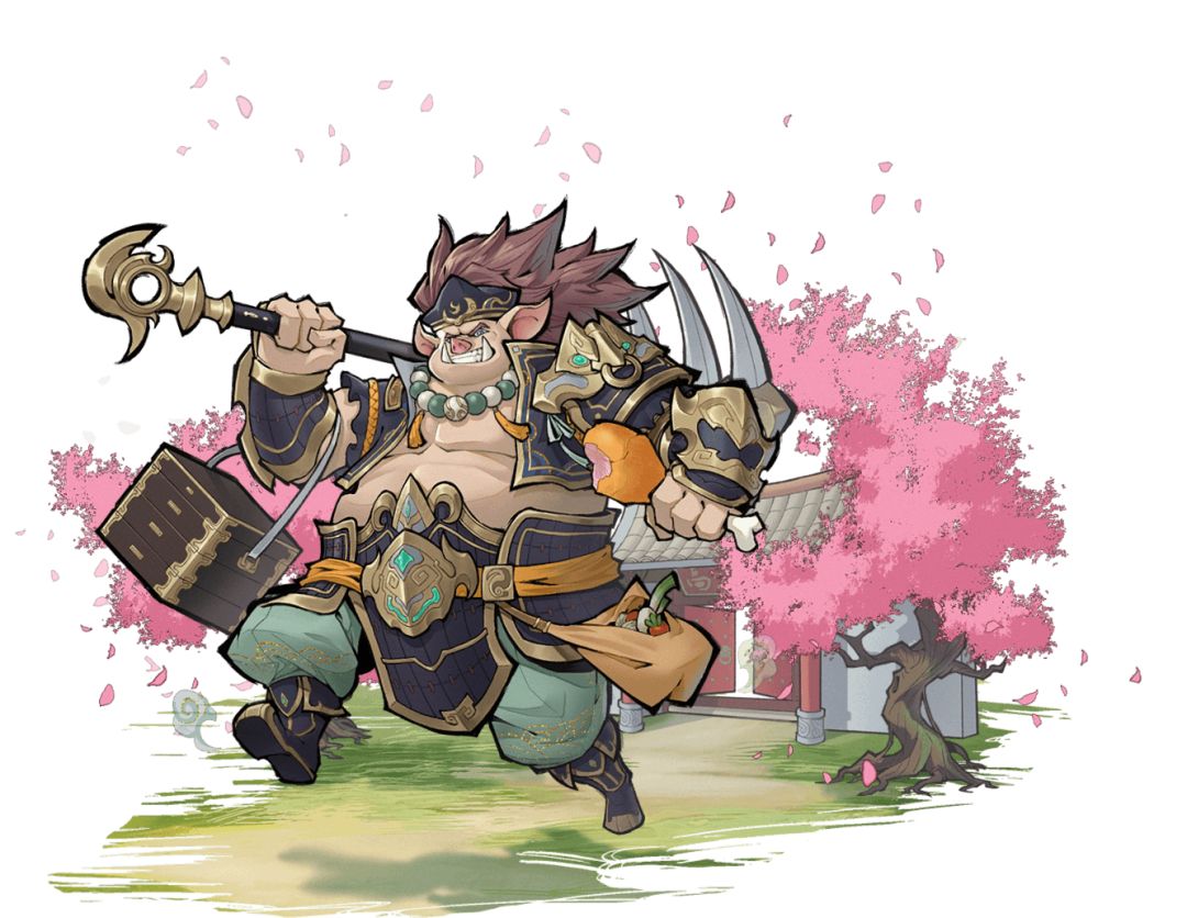 原是天庭玉皇大帝手下的天蓬元帅,因调戏嫦娥被逐出天界。唐僧西去取经路过高老庄,被孙悟空收服,拜唐僧为师