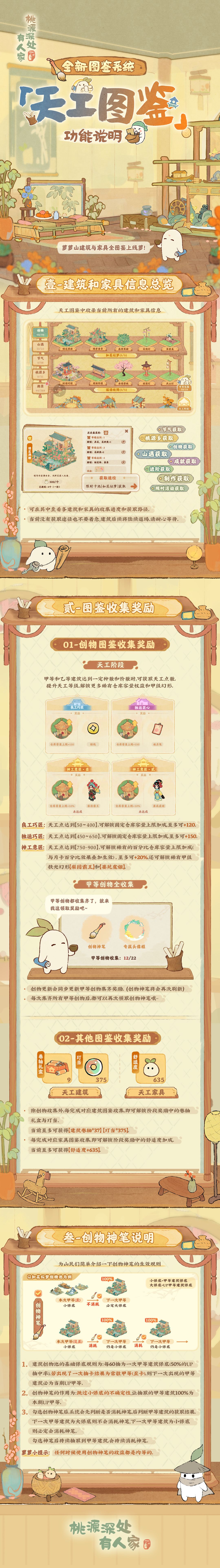 「天工图鉴」不仅收录当前所有的建筑和家具信息,图鉴收集到一定数量可以领取对应的奖励。