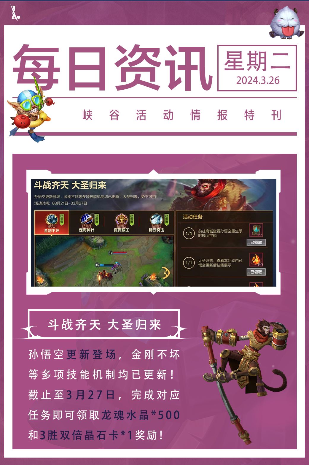 与此同时,春日奇幻旅途的最后一站也已同步开启!今日起,截止至4月4日,召唤师完成活动任务即可获得能量*300,加快徽章收集进度,领取植此新绿头像框及龙魂水晶好礼~