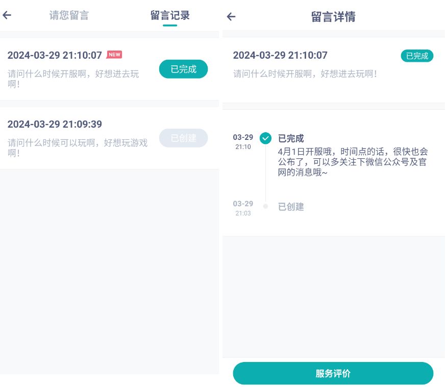 游戏登录界面和微信公众号提交问题实质上是一个网页链接,日常客服这边经常也会接到一些朋友反馈提交问题后没有任何的回应,或者是找不到之前问题的记录了,因此这边需要特别说明下提交问题后的一些注意事项,避免耽误大家问题处理进度。