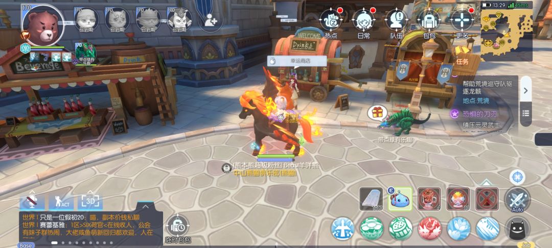 幸运商店就是通过乐园币可以购买到材料,但是材料是随机的,跟公会捐献一样道理,每天5点的时候更新。传送到各个主城地图
