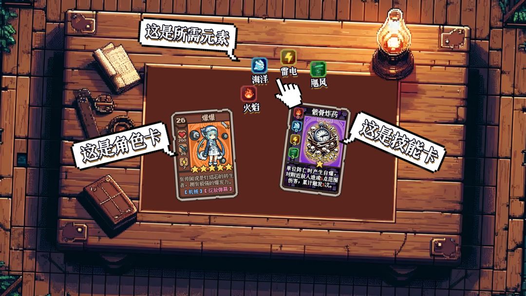 例如这张「骸骨炸药」,你只需要通过打出相同元素属性的角色卡就能触发这个技能,巧妙的构筑能够让角色与技能或是技能与技能之间产生强大的连锁反应!当然你首先需要有一个能够想出这些构筑的脑子,如果没有,那么我在论坛提前为你准备了一些可以直接抄的作业,喏~就在那边的攻略站,点进论坛就能找到。我会在未来持续更新和维护这个攻略站。