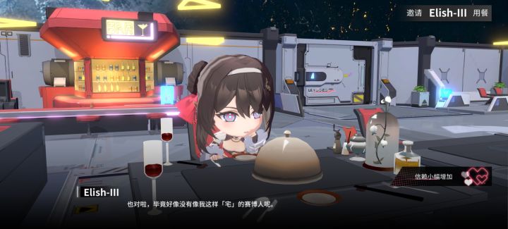 与大多数出生即配备了知识的赛博人不同,Elish-III出生后很多知识是自己一点点学来的,因此她对新鲜事物会比较好奇。