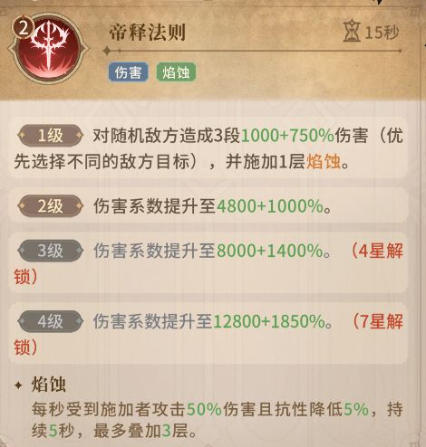 二技能华仪之威:3星核心离火,焰蚀状态下即可达到每秒75%无视抗性的真实伤害。
