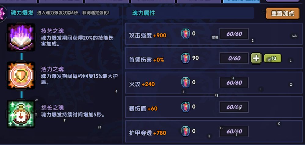 选择绵长之魂可以在第三波到第四波怪物持续输出,也可以选择减冷却的以保证每波都有小爆发