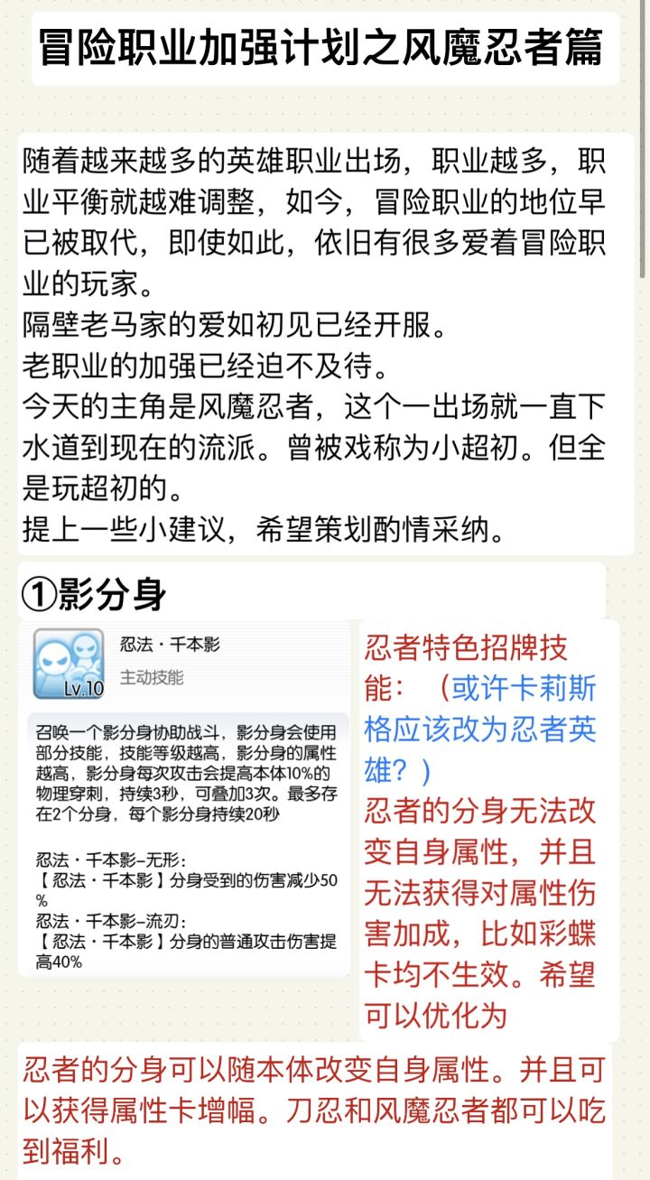 策划看过来,冒险职业优化计划之风魔忍者篇