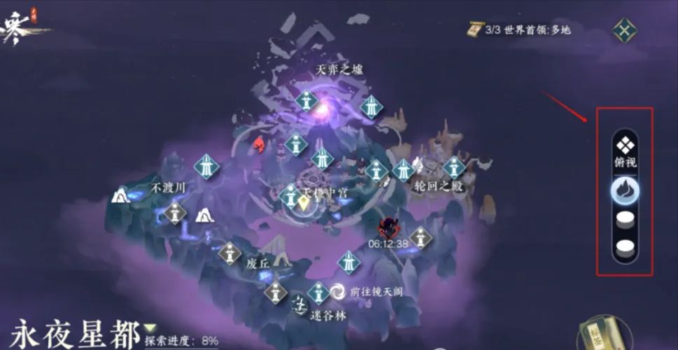 5、永夜地图导航正确玩法:可以打开永夜星都-在右侧切换【顶视/透视】和复杂区域【分层显示】。同时小地图也会根据同门当前位置切换到对应的地图层。