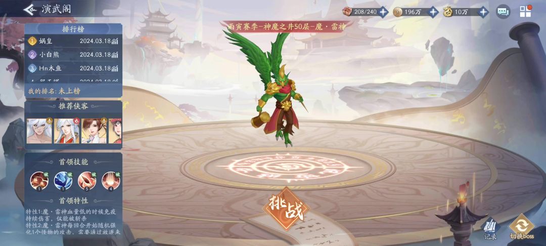 从这里可以看出,如果你不做闪避装,你也过不了,如果你做了闪避装,但是专属仙术中的闪避数值不高,也很难有过半概率,这是个连环扣,重要的不是越今朝的星级,是10星越今朝+一套闪避装+专属仙术闪避10左右+清辉的组合,如果你有这个组合,你继续看下去,如果没有你可以忽略这个boss。