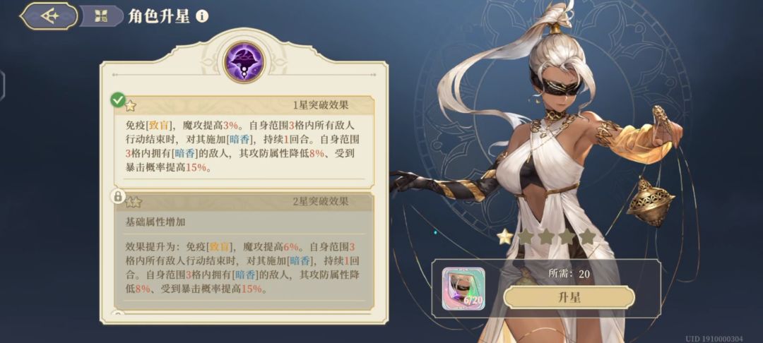 个性效果提升较为平缓,参考马格努斯的个性光环提升效果。但哈斯娜比马格努斯多提升了15暴击率,面对单个敌人,暗香很容易持续上,面对多个敌人依靠个性效果很容易断档,只有满星后持续两回合才算稳定,这一点效果不如老马。