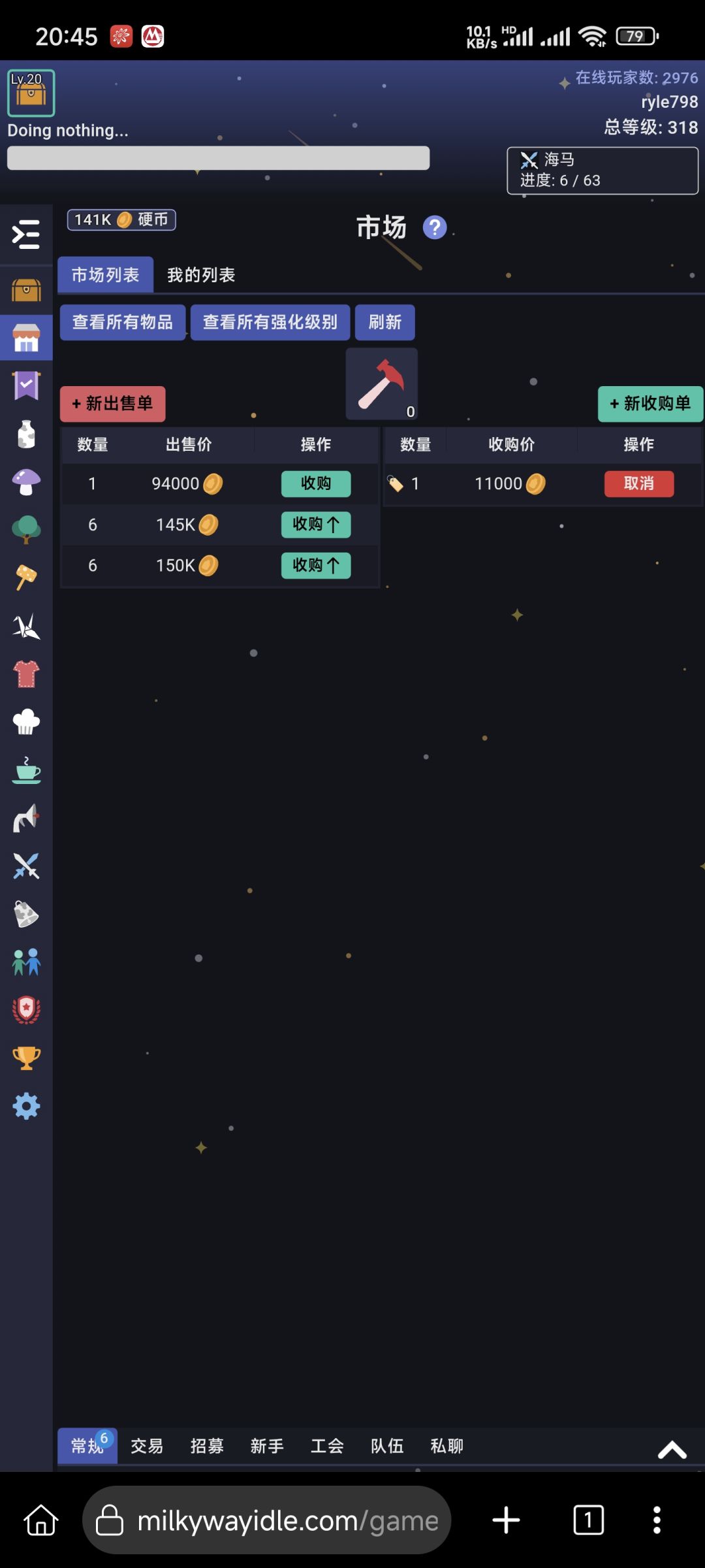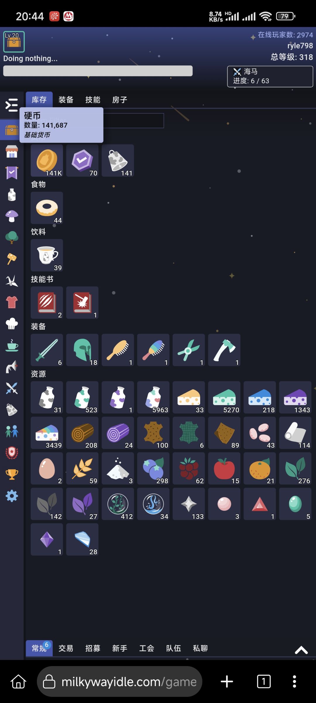 前文提过,这是一款melvor类放置型游戏,如果玩过的可能会对这个游戏的主体非常熟悉,游戏内容由:生活类与战斗类组成,而作为联机游戏,还添加了交易市场、任务系统、社交系统等