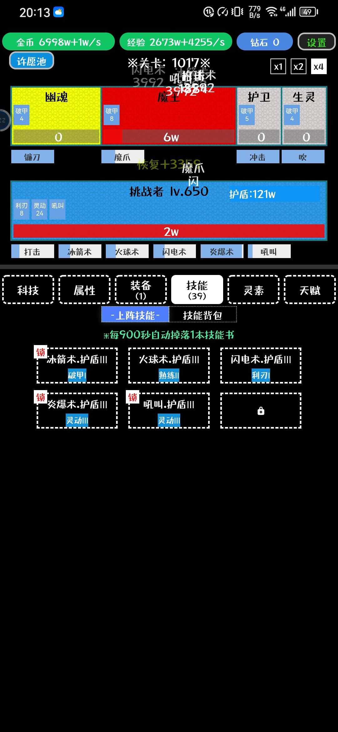 1000关,后面应该没啥新东西了,毕业技能3~4个4.5护盾+灵动/熟练,有条件再配个易伤,天赋2盾2灵动以上,有熟练易伤更好,装备全带闪避,其次技能CD,其次冰元素,后面关卡全靠闪避抗到开盾,然后叠灵动,3级灵动一层3%闪避,叠满24层72闪避,加上面板百闪了,就是经常闪退,离线也不能自动推关,也没啥好玩的了