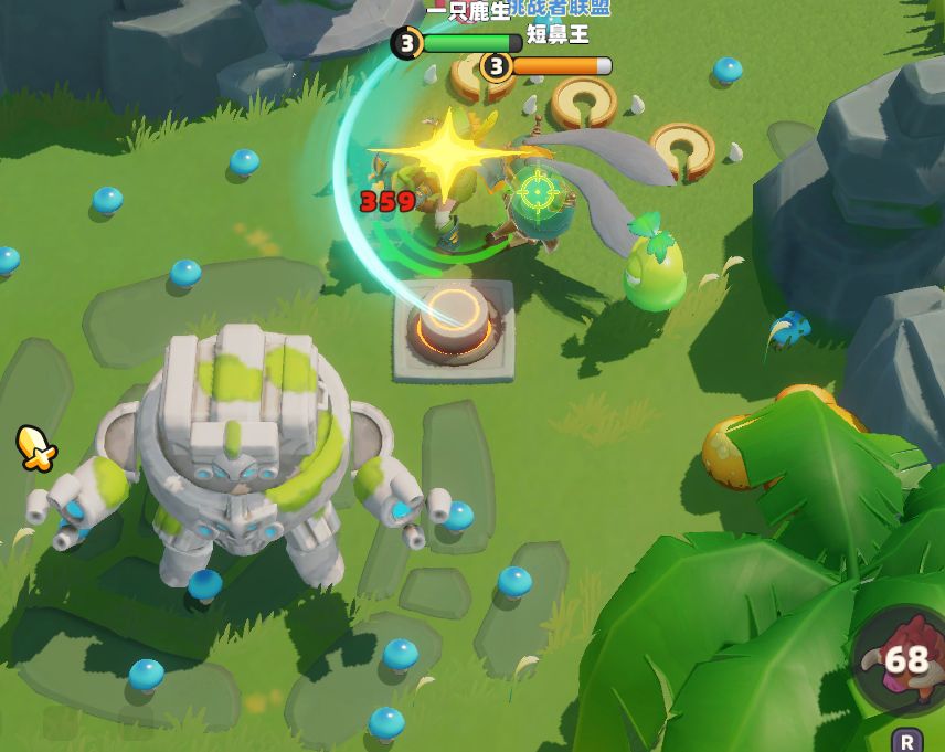 最后就会刷新菇霸,大家都会来这里争夺。只要击杀这个紫色怪,就会掉落紫色大蘑菇。捡起来直接变身菇霸。接下来存活就能赢了。