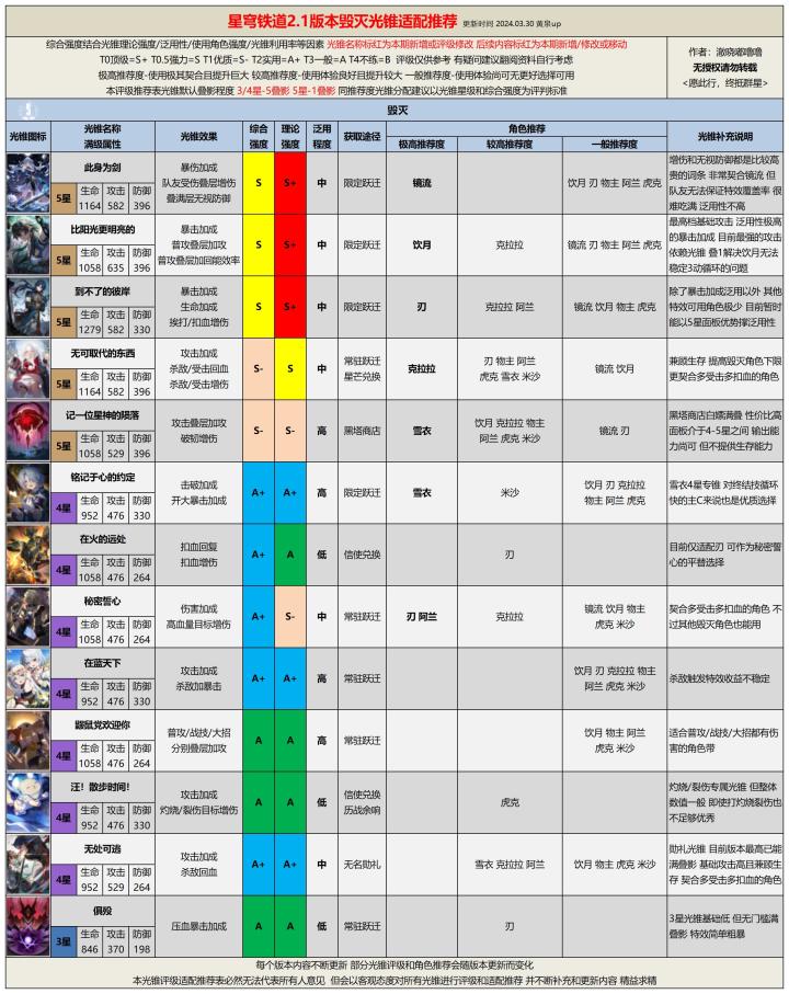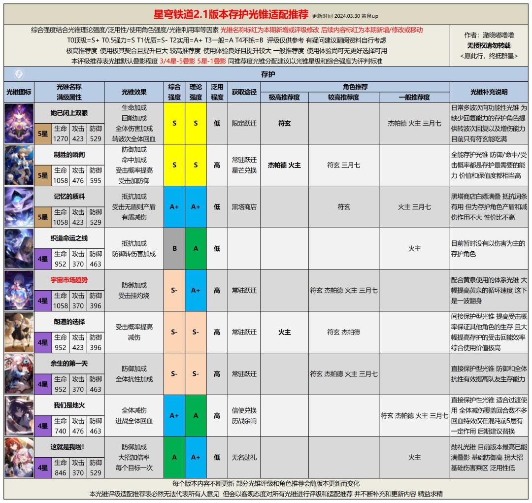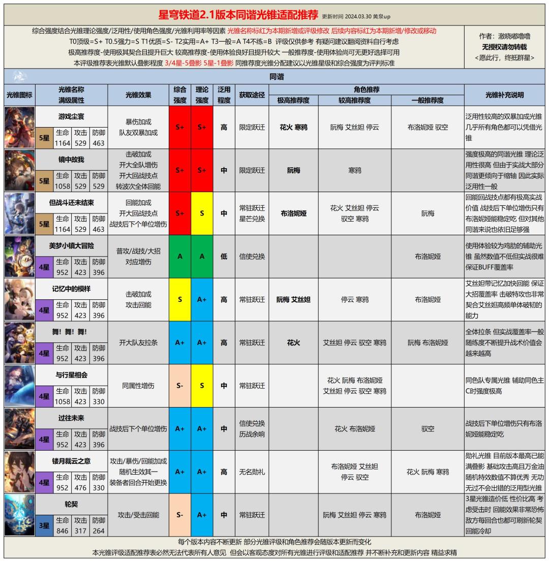 版本不断更新,环境不断变化,任何光锥的评级和适配角色都有可能发生变化,未来本系列攻略也会随版本持续更新,为各位带来最直观最有效的游戏攻略。