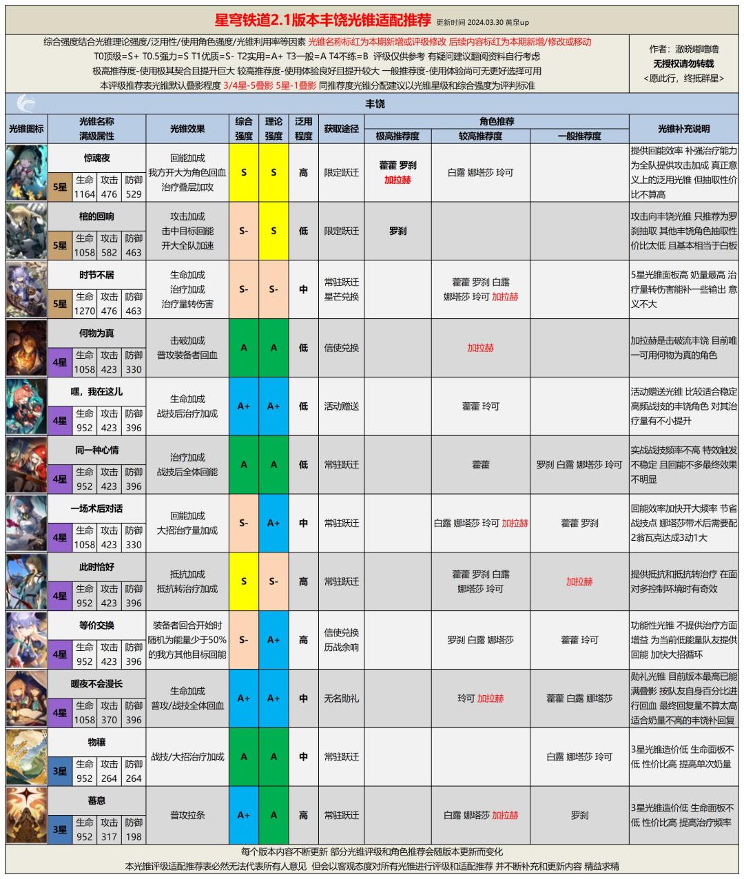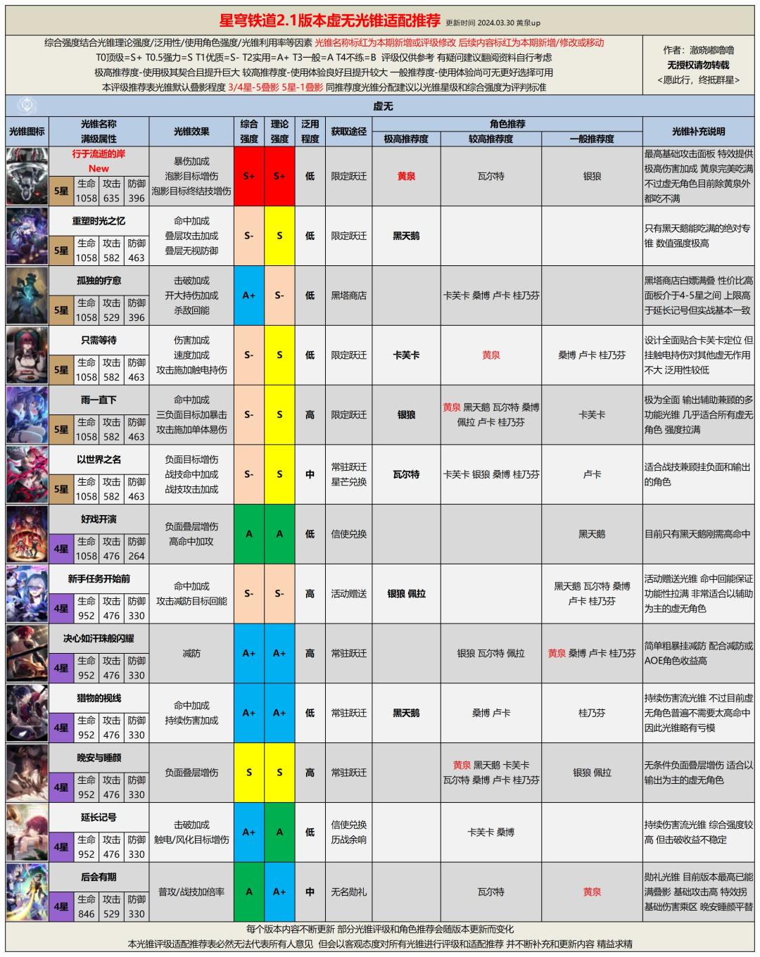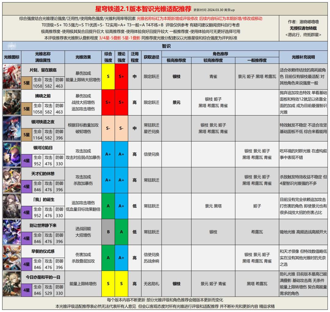 版本不断更新,环境不断变化,任何光锥的评级和适配角色都有可能发生变化,未来本系列攻略也会随版本持续更新,为各位带来最直观最有效的游戏攻略。