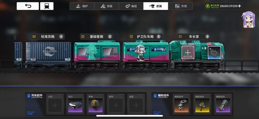 在车站停靠的时候,我们可以进入列车整备页面