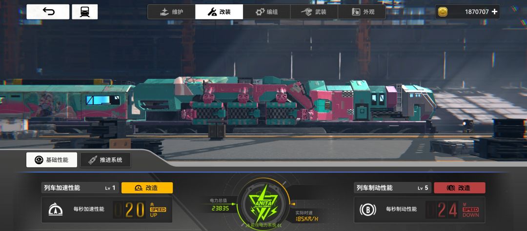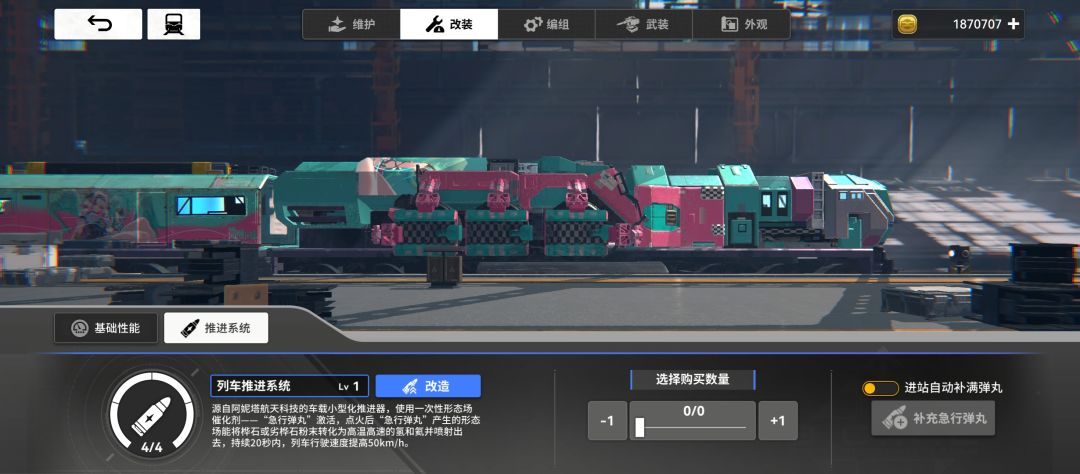 推进系统改装弹丸速度上限50,后续改装是增加弹丸持续时间和上限,加速性能改装可以忽视,制动性能改装在你弹丸加速下速度能>500后可选择进行升级,刹车会舒服一些