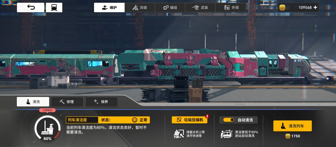 维护 消耗金币对列车进行清洗,清理,保养,
