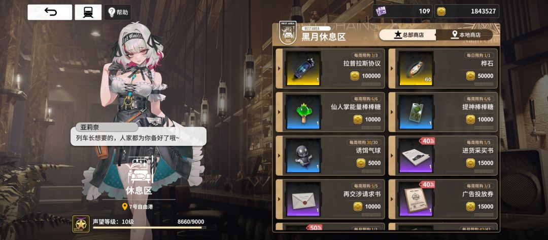 总部商店是全城市互通,有抽卡道具和体力疲劳恢复道具