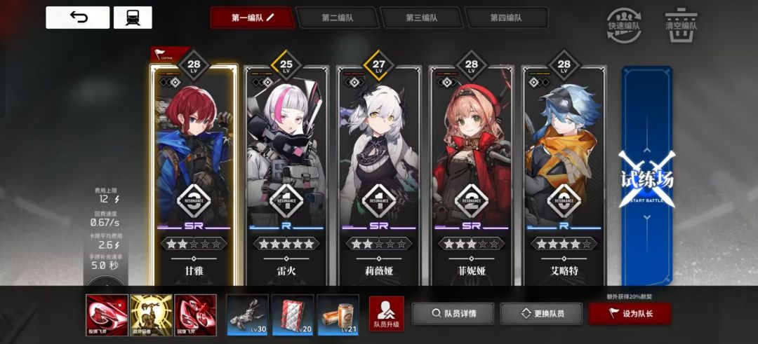 关于角色的配队其实前期不是那么讲究,只要能打过主线就好