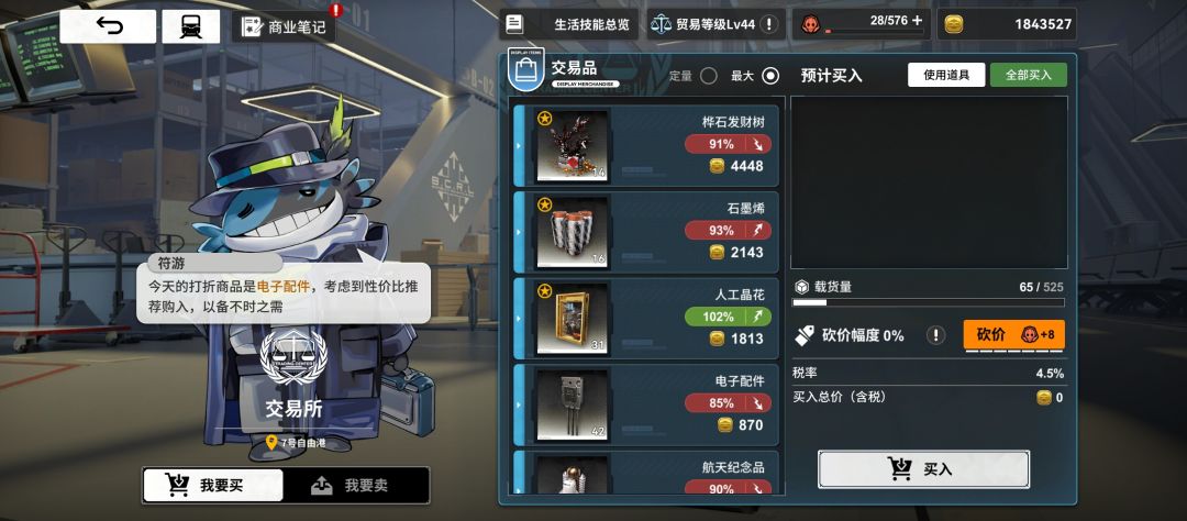 交易所里,商品买完后可以使用采买书刷新