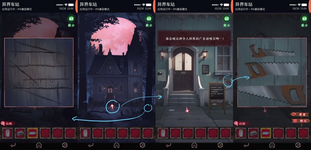 回到洋馆门口,点击门口左侧展板,将剪报放上去自动变为地图,本章结束。