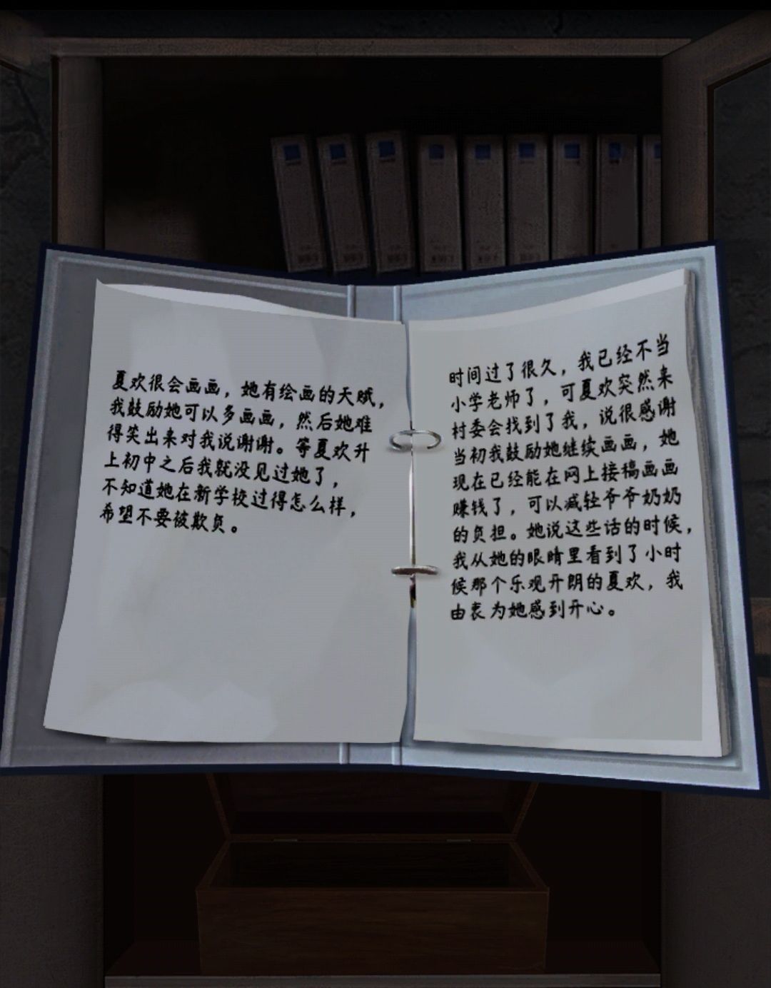 等到了新鲜出炉的作品,还不错。游戏主题围绕着“被网暴自杀的姑娘——夏欢”展开,这一话题很有新鲜度,也聚焦了一些社会问题。同时,游戏各章节深入度不够、关联度略差,要是能将网暴者的嘴脸、网暴的原因、对网暴的思考等细节融合其中,就更好了。游戏难度不大,只有第五章需要费点工夫。(唉,善良的夏欢,总是牺牲自己成全别人,太心疼了)。再接再厉,期待下一部作品。