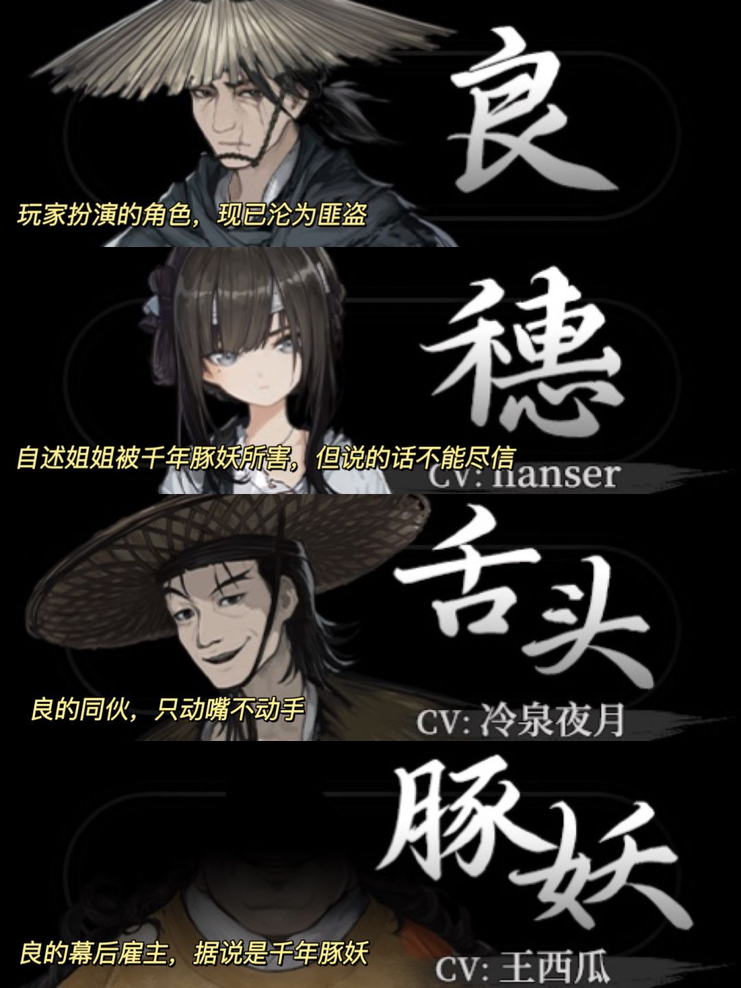 玩家将扮演盗匪良,接受了不明雇主的委托,负责运送四名小女孩至洛阳城。良以为被运送的女孩会被卖到富人家作养女,但途中女孩穗告知他雇主竟是好食女童的猪妖❗️