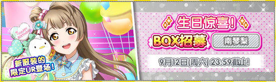 包含一张2020年生日纪念UR社员的BOX招募和包含随机1张2018至2020年生日纪念UR社员的BOX招募将登场。