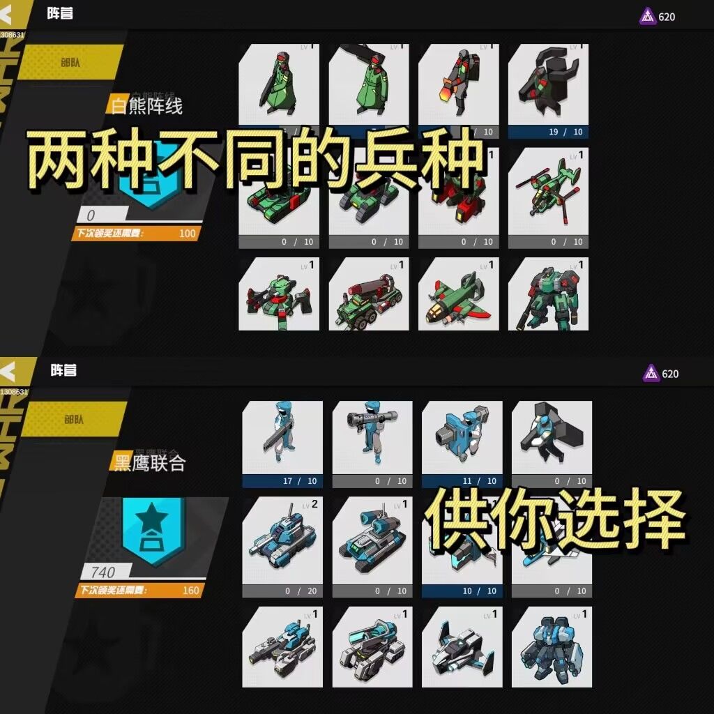 兵种游戏中一共有现有两种兵种可以选择
