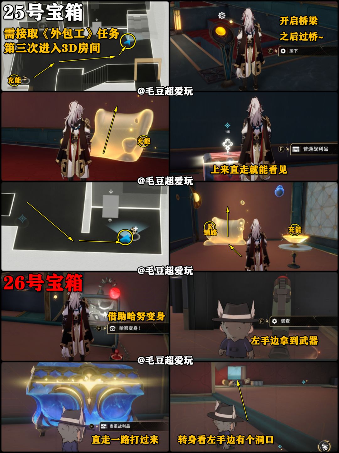 已经做完《外包工》任务的开拓者可以跳过白色的任务宝箱部分,但注意别漏掉26-28号的哈努宝箱!