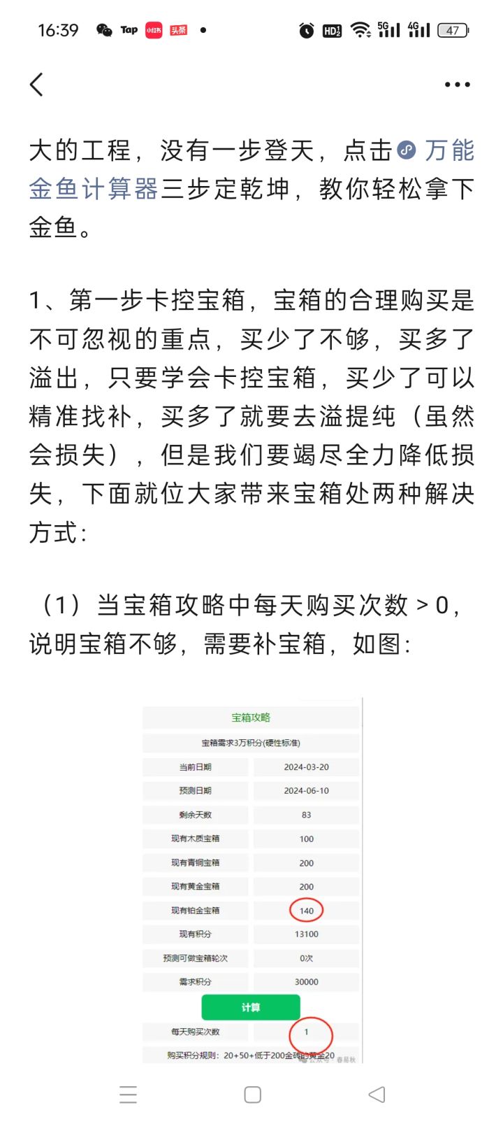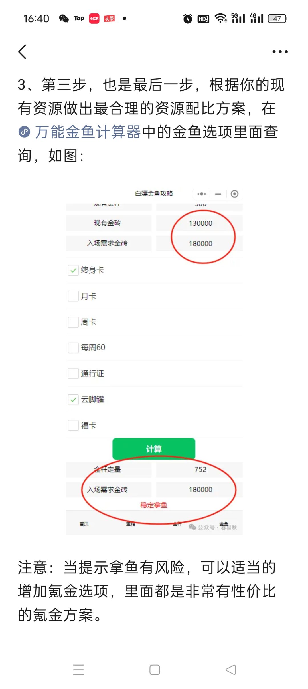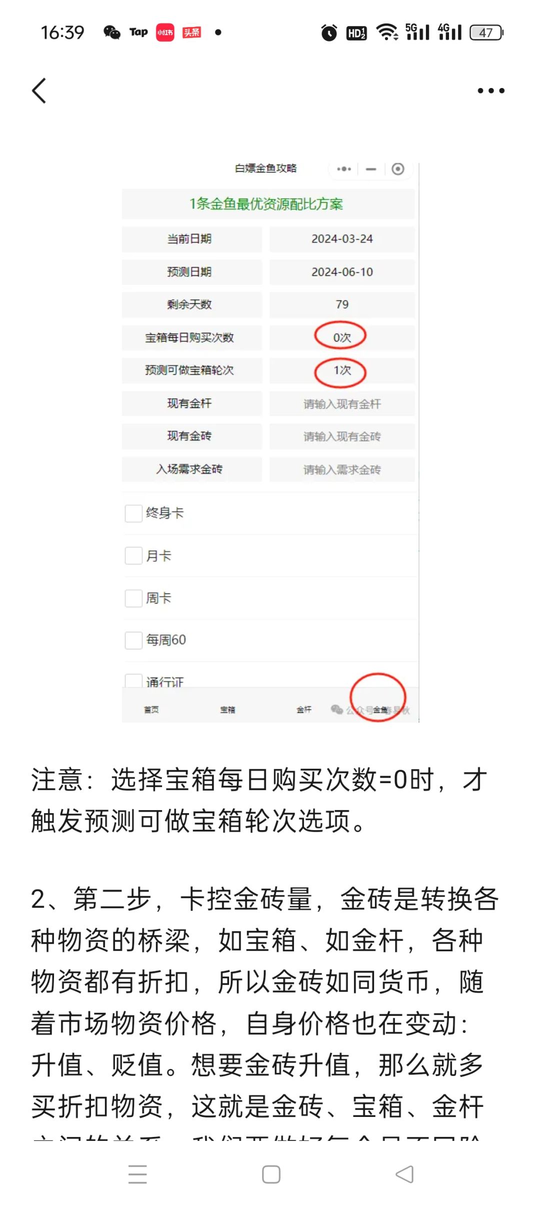 1条金鱼最优资源配比方案