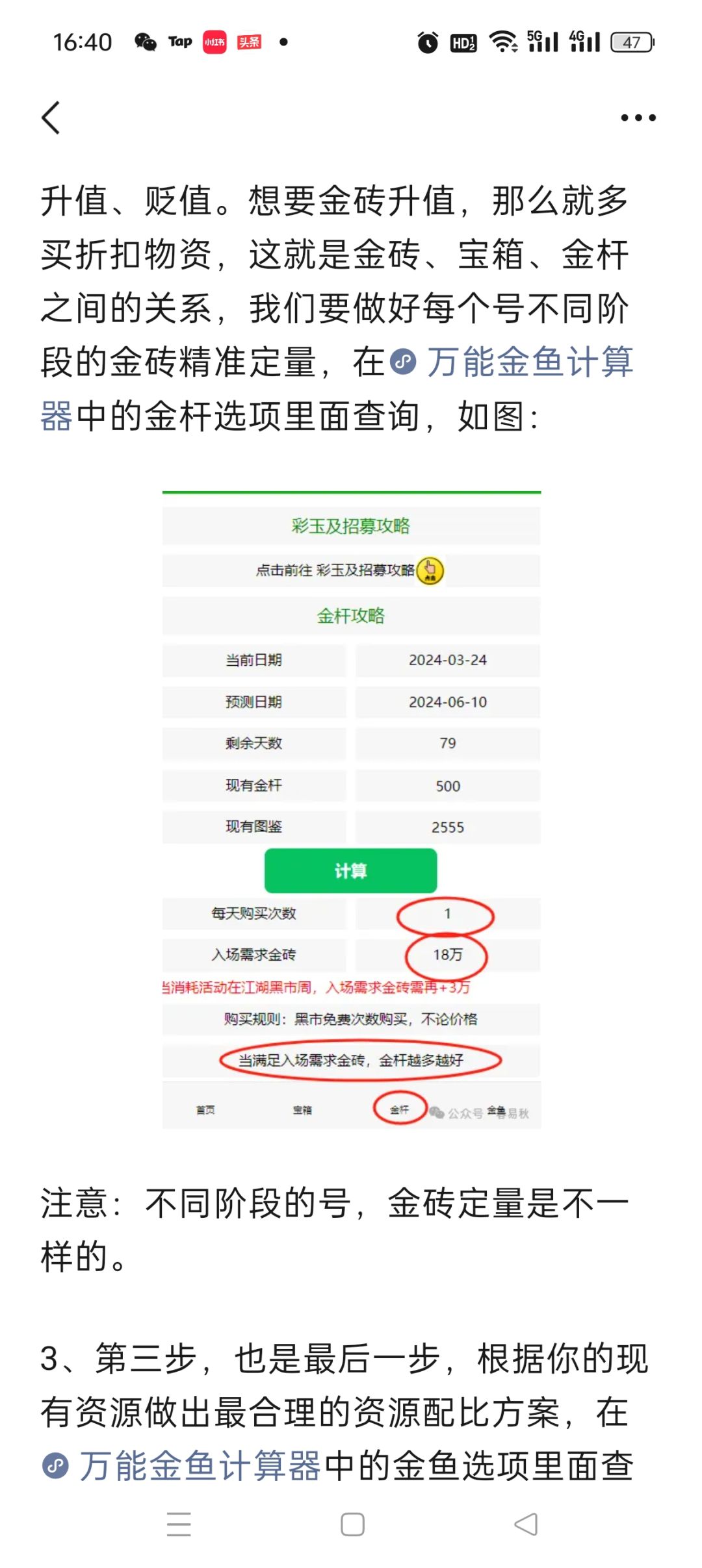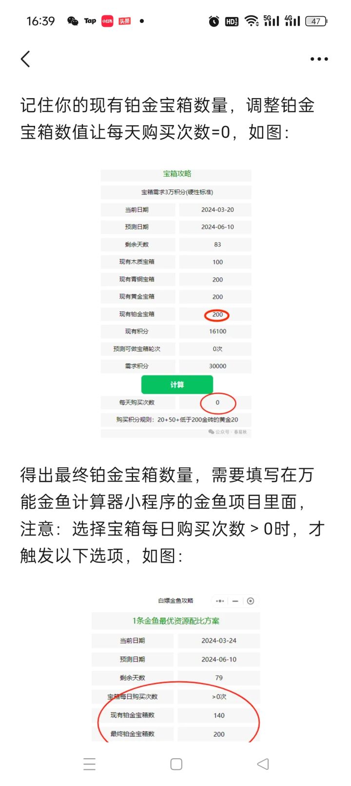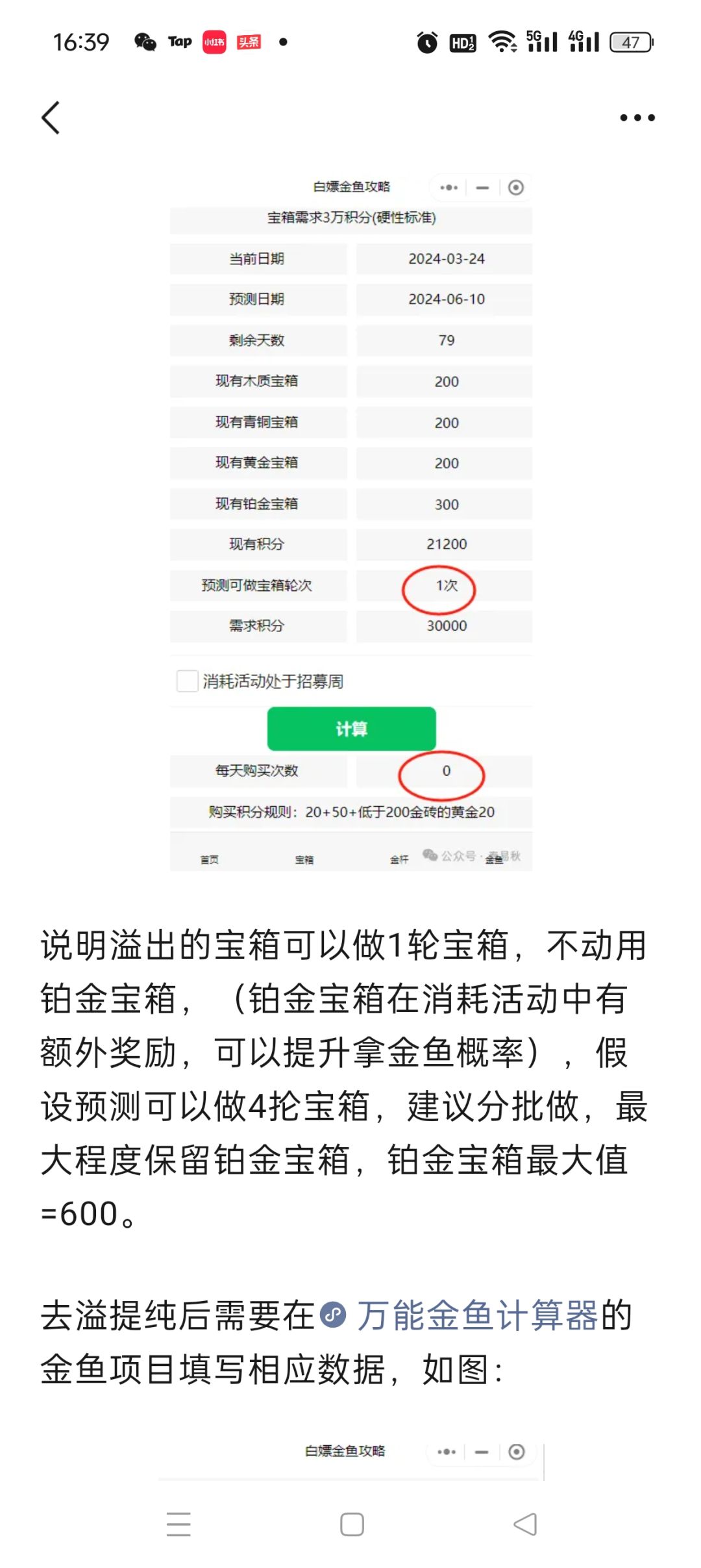 1条金鱼最优资源配比方案