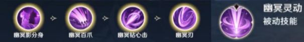当幽冥附体接其他斩杀技能使用时,就是一个完美的刺客连招,比如衔接幽冥刃时,隐身靠近目标的同时,给即将释放的技能增伤,达到斩杀效果。