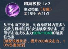 06幽冥突刺:向前方进行一段突刺,并产生伤害和眩晕,可释放两次。简单来说就是一个二段位移技能,附带一个0.5秒的硬控,伤害可观,非常适合玩突进刺客的玩家。