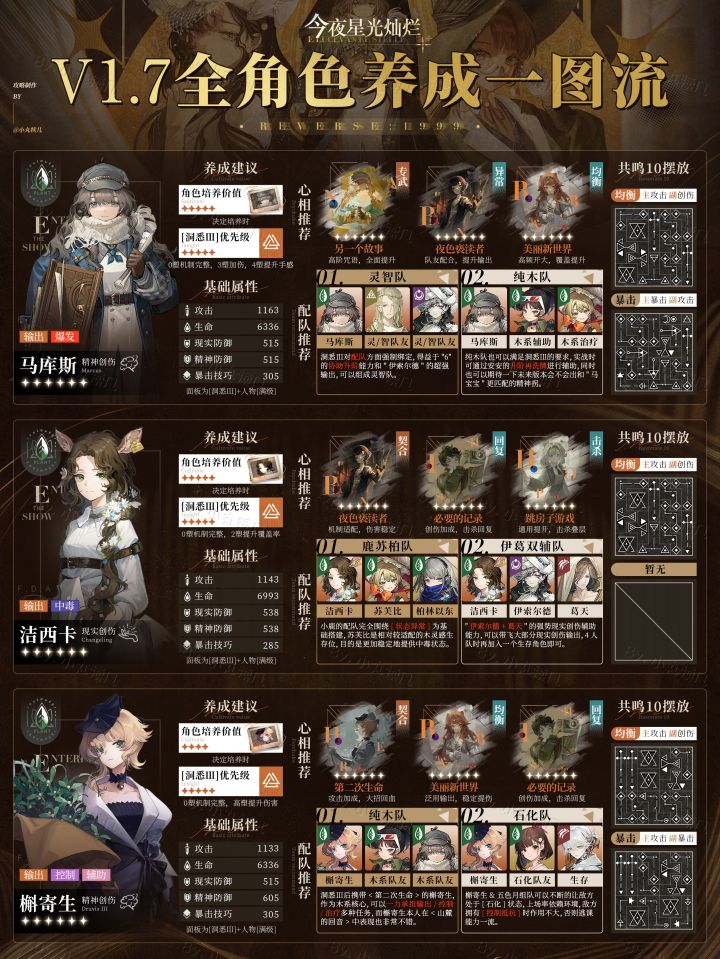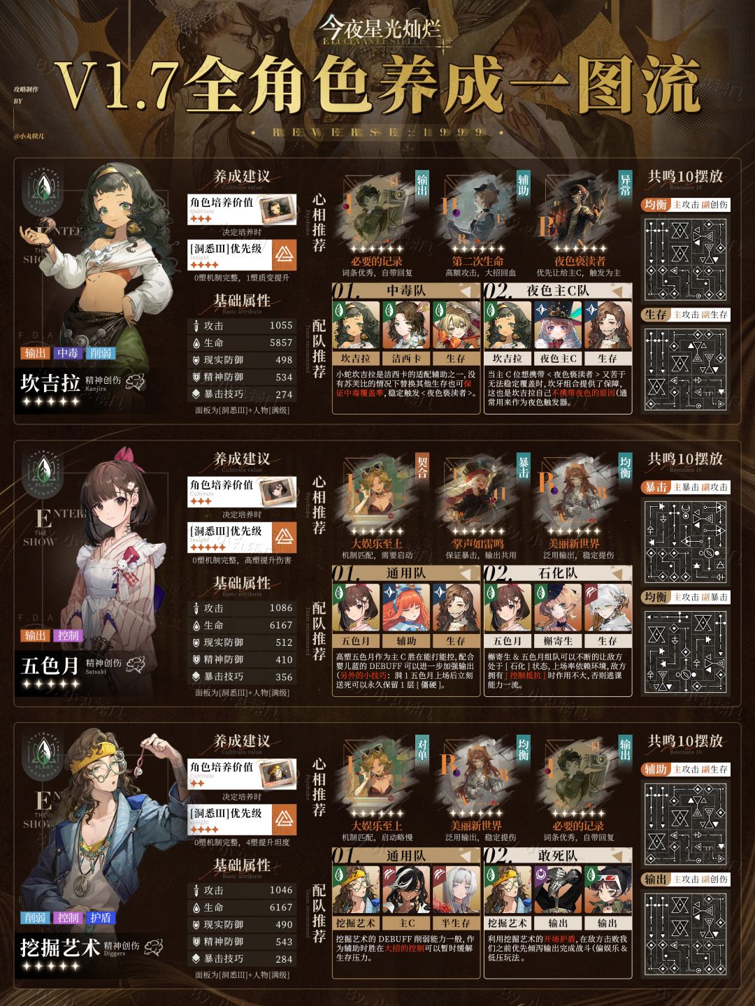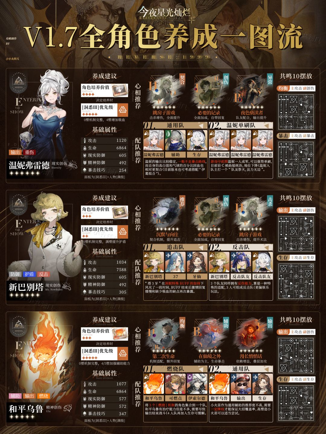 以下就是优化后的全角色一图流攻略<重返未来1999 V1.7版本-今夜星光灿烂>『5/6星全角色一图流』养成攻略