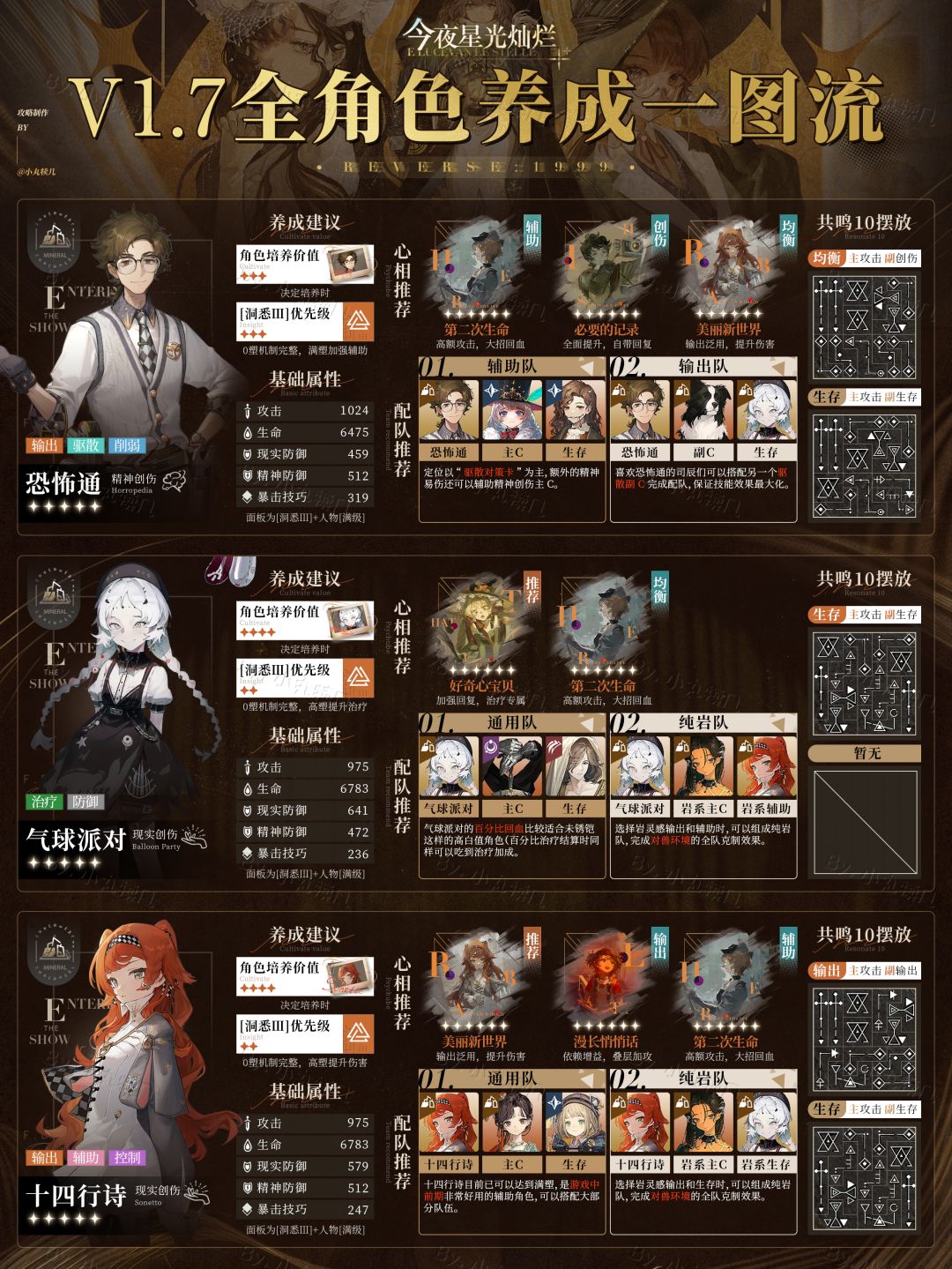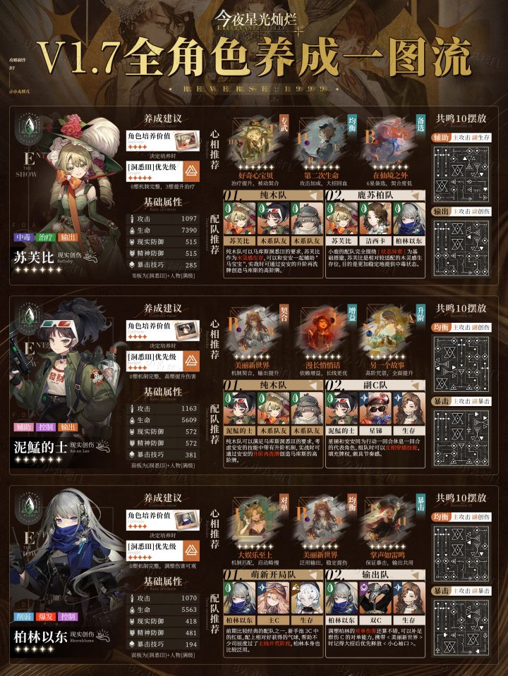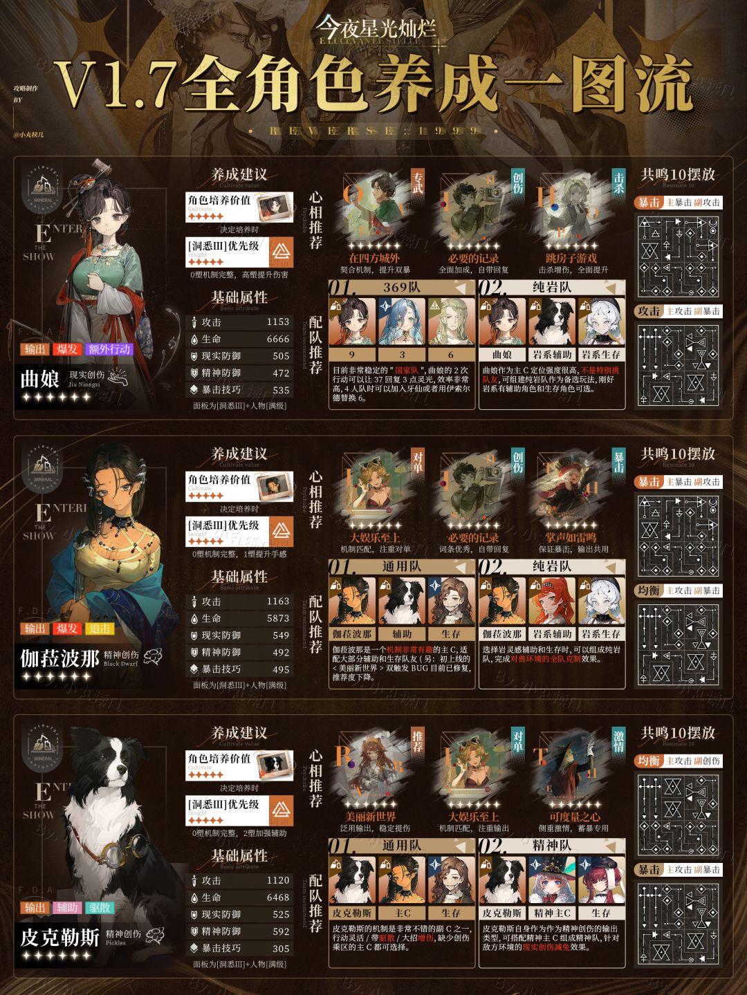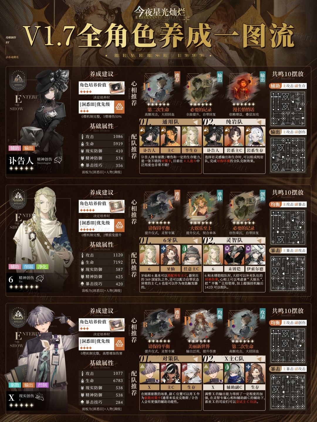 以下就是优化后的全角色一图流攻略<重返未来1999 V1.7版本-今夜星光灿烂>『5/6星全角色一图流』养成攻略