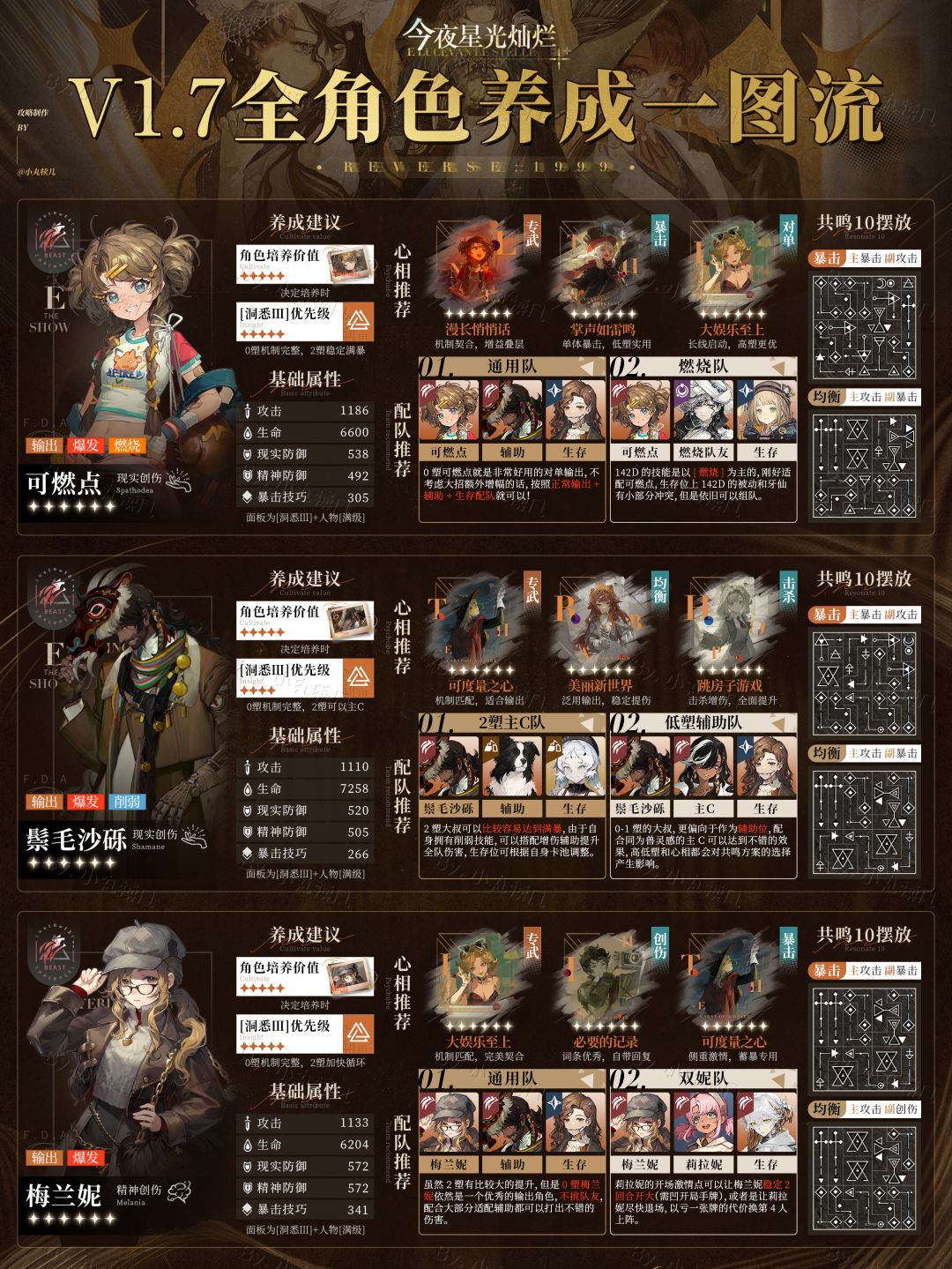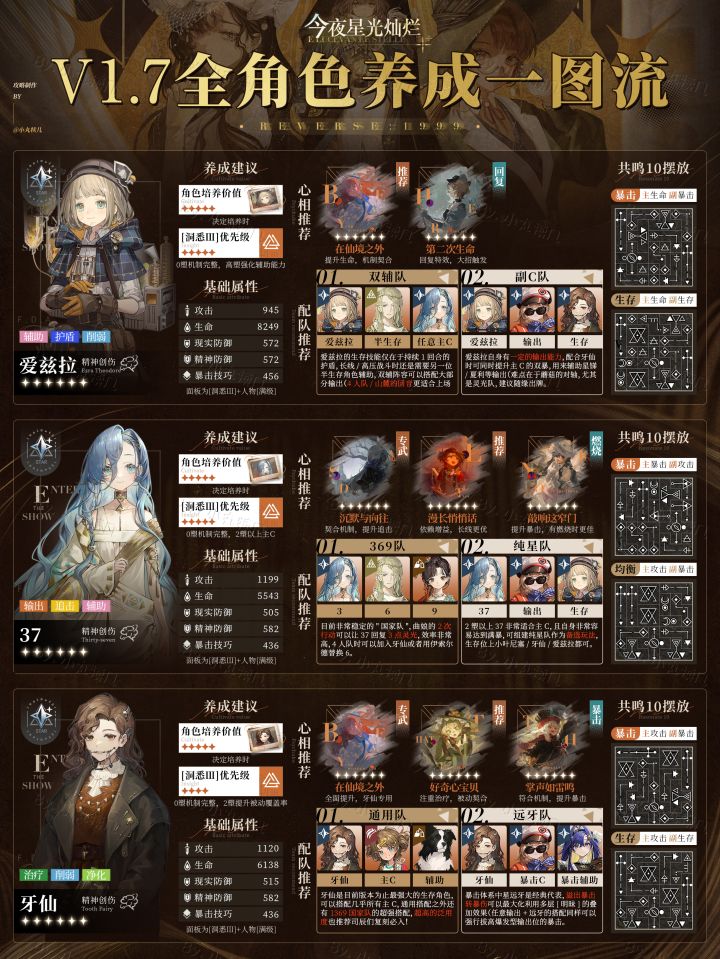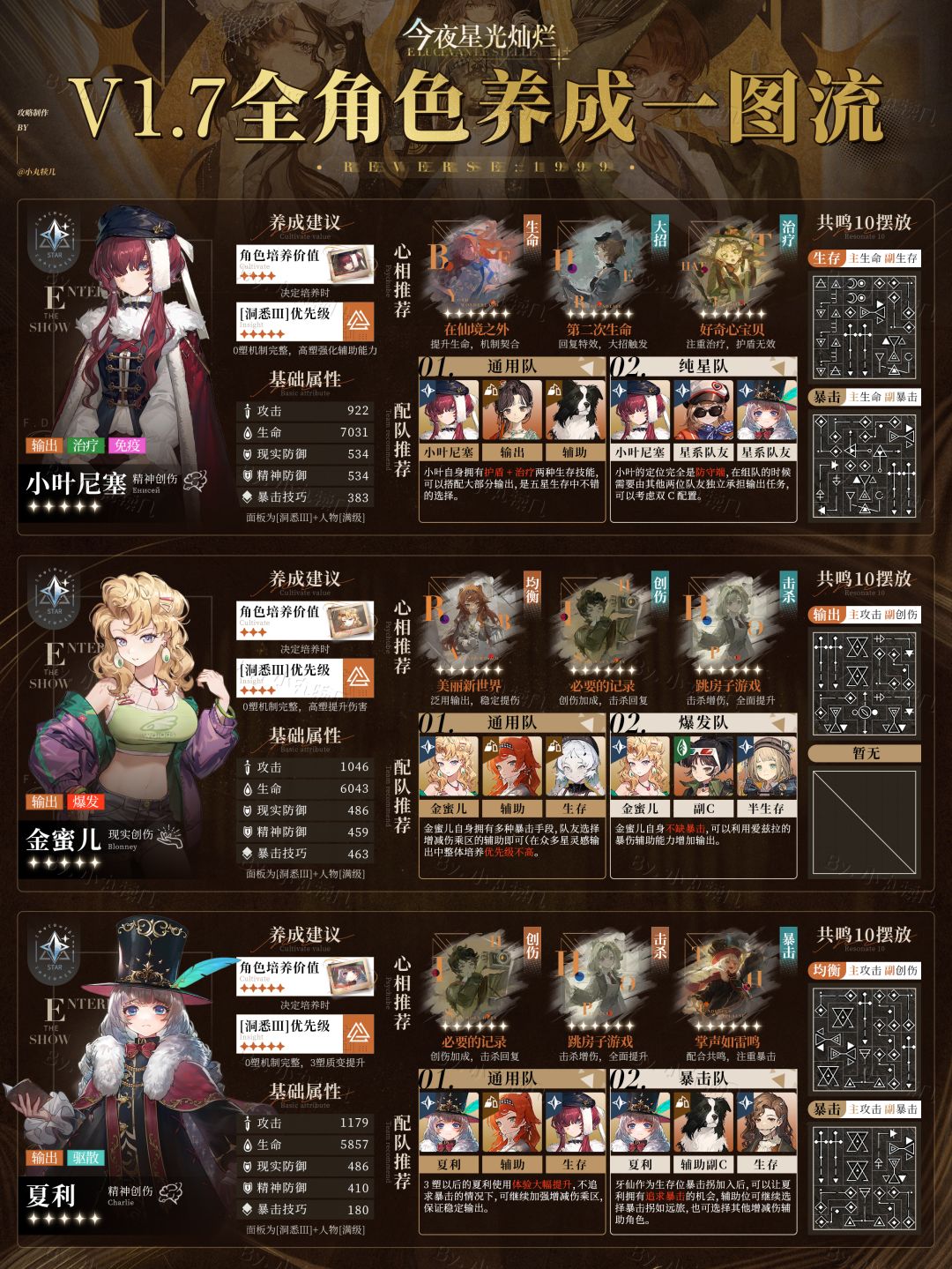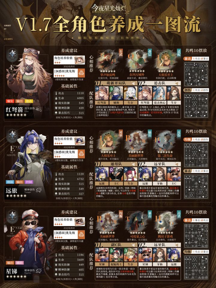 以下就是优化后的全角色一图流攻略<重返未来1999 V1.7版本-今夜星光灿烂>『5/6星全角色一图流』养成攻略