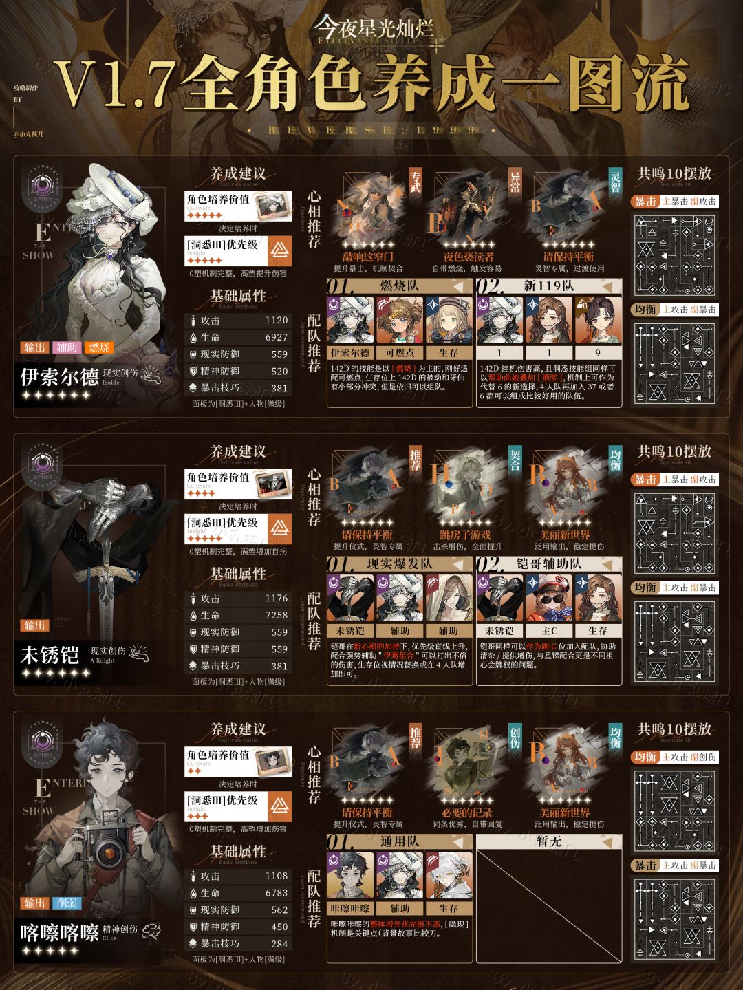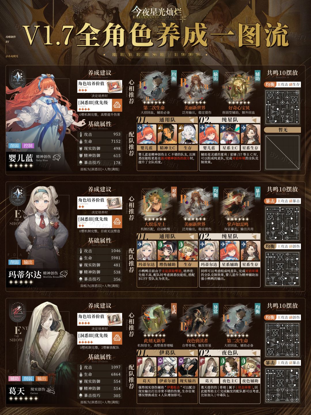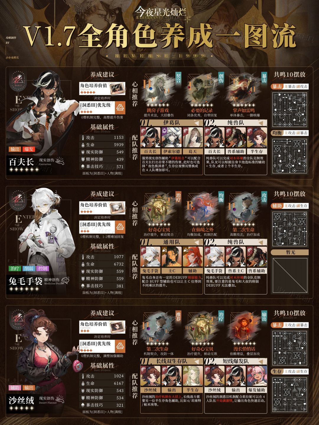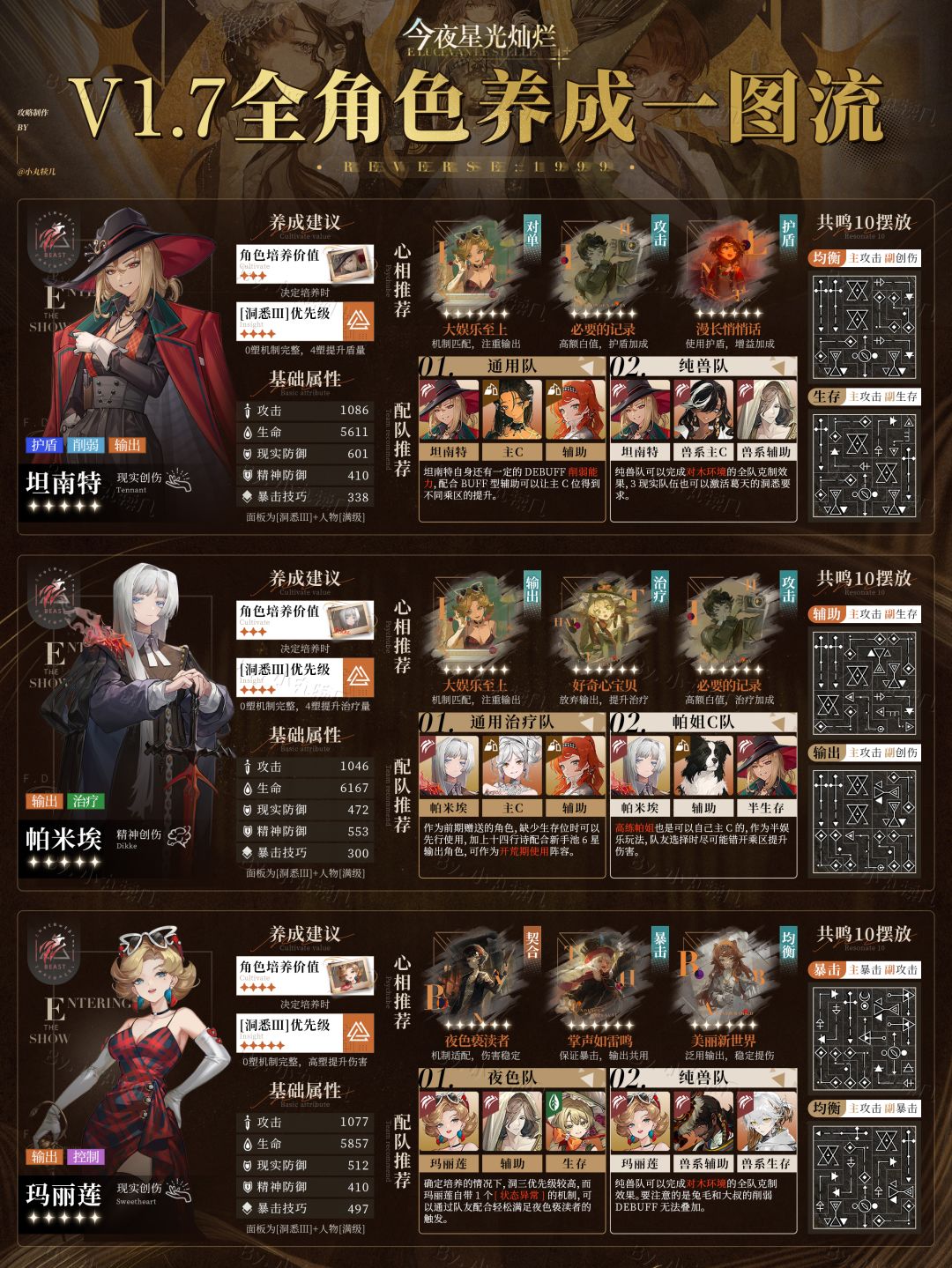 以下就是优化后的全角色一图流攻略<重返未来1999 V1.7版本-今夜星光灿烂>『5/6星全角色一图流』养成攻略