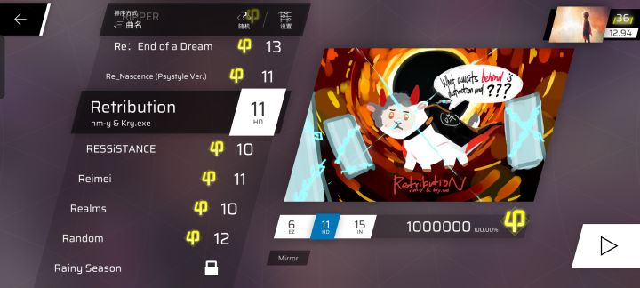 注:目前测试游戏重新启动后在retribution第一次切换难度必进愚人节曲