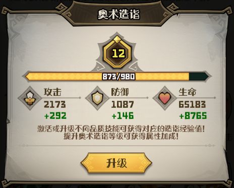 激活或升级不同品质的奥术可获得对应的造诣经验值,提升奥术造诣等级可获得攻/防/生的属性加成。