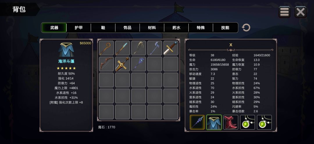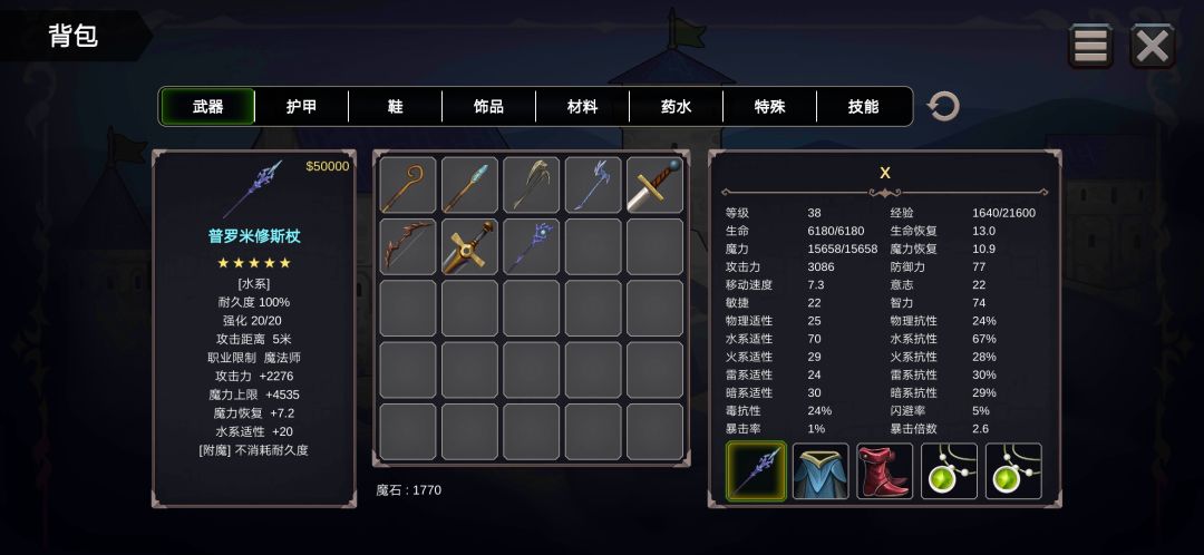 之后去无人岛刷普罗米修斯法杖 和海神斗篷 这样20水属性就到手了
