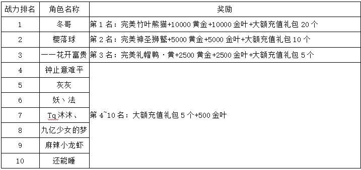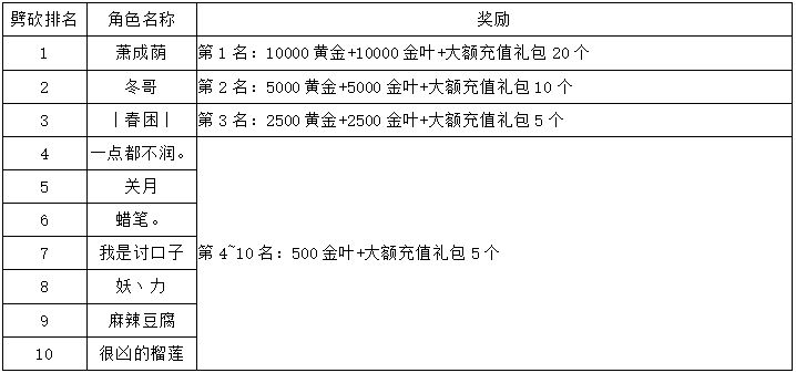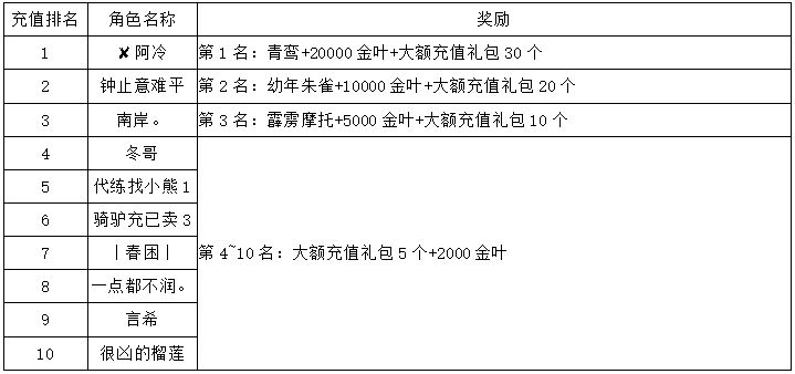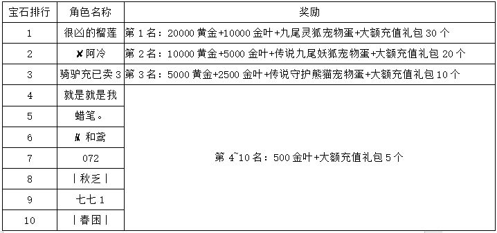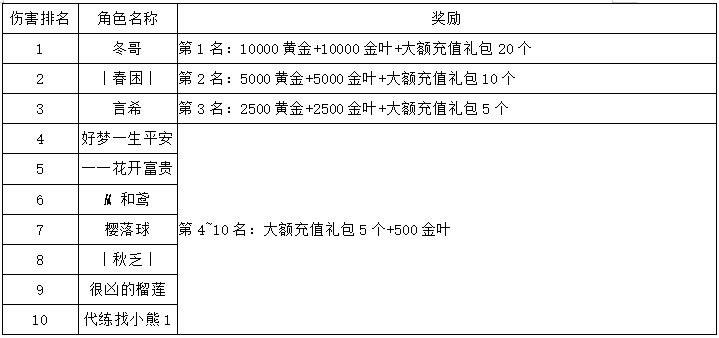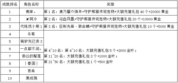 《世界OL》3月新区活动获奖名单