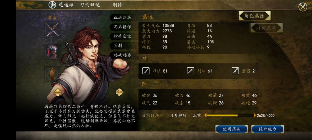 我steam里也买了前传,但几乎没玩。这边手游一出我就直接买。体验了一下原汁原味,战斗,画面,语音等等都不错。战斗点开人物头像面板还有语音,很棒!目前玩到了洛阳,但进店去买药发现囊中羞涩,可以不修改面板,但口袋必须得鼓鼓的,我自己摸索修改了金钱,毕竟游戏刚出,完全自己摸索出来的,成功了!这下就可以愉快的买买买了,单机游戏的乐趣不也是摸索折腾么