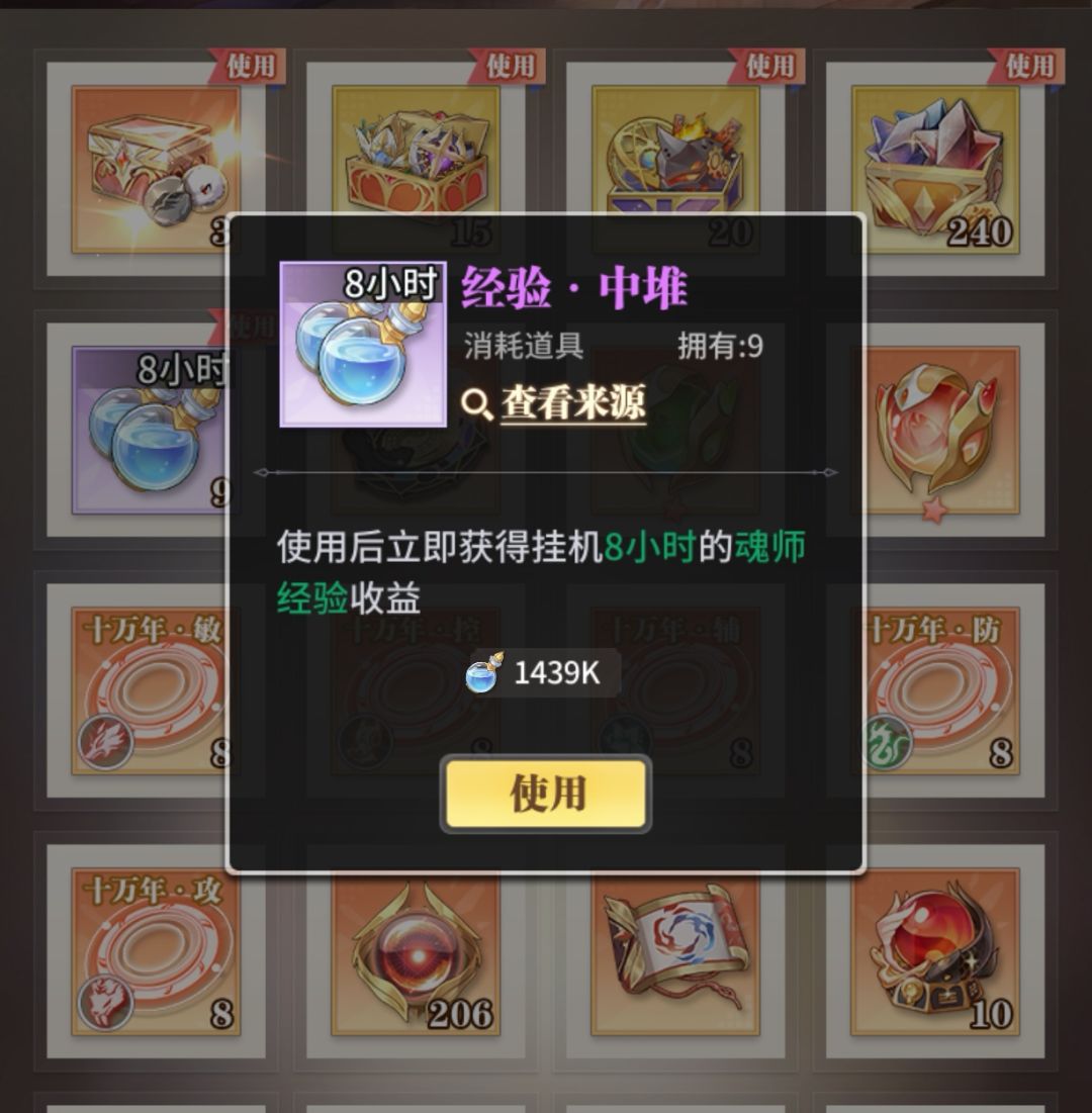 如图2,当前御堂魂师加成为34%,使用8小时经验堆只获得1372k,这个时候作为机智的你已经想到方法了吧