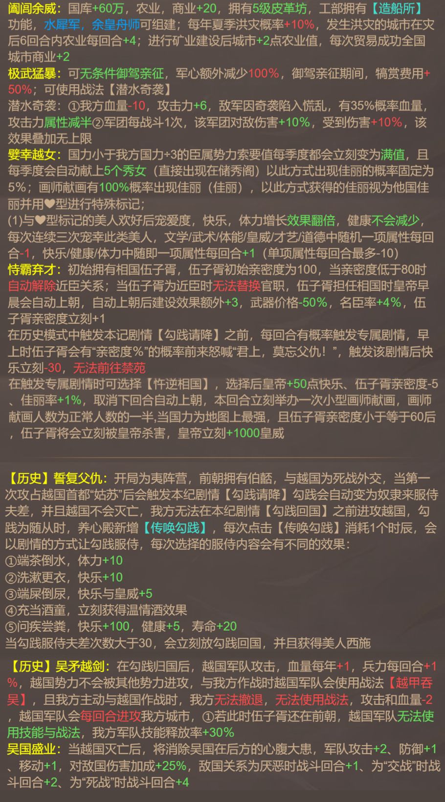 伍子胥的存在于否也会影响后续剧情的推演,试想一下如果勾践再起之时,伍子胥仍在,历史会走向怎样的一个分支呢?这就要看各位玩家在帝成中的尽情发挥了!