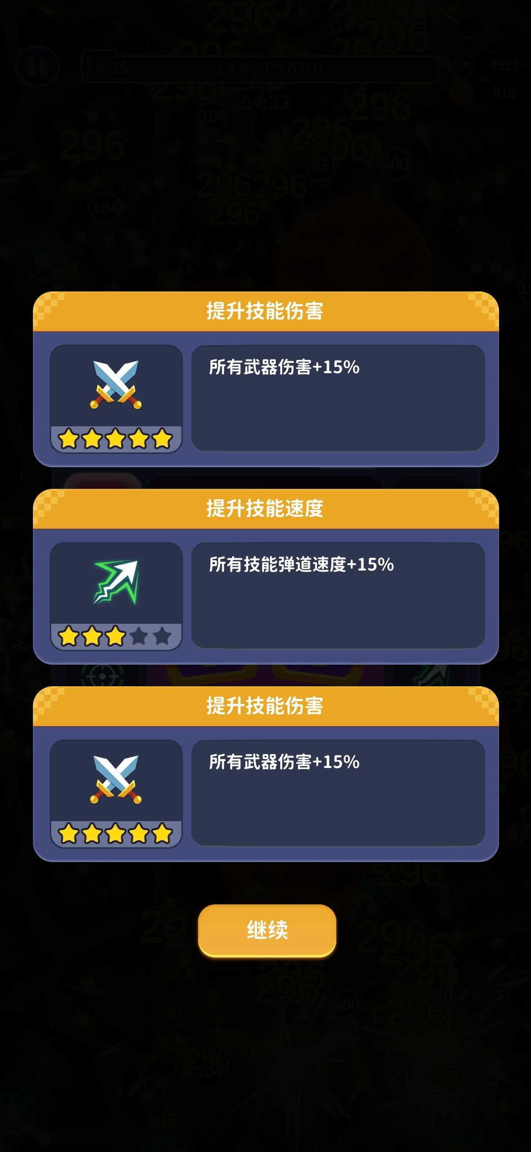 ④升级的时候,技能会重复出现,导致少一个选择(忘截屏了,有点影响游戏体验)