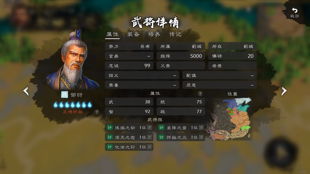相信各位主公在看过邹衍的传记介绍之后,对他已经有了初步的了解,在你眼里邹衍是一个什么样的人,欢迎大家一起在评论区讨论,接下来让我们一起来看下在游戏中邹衍的详情介绍。