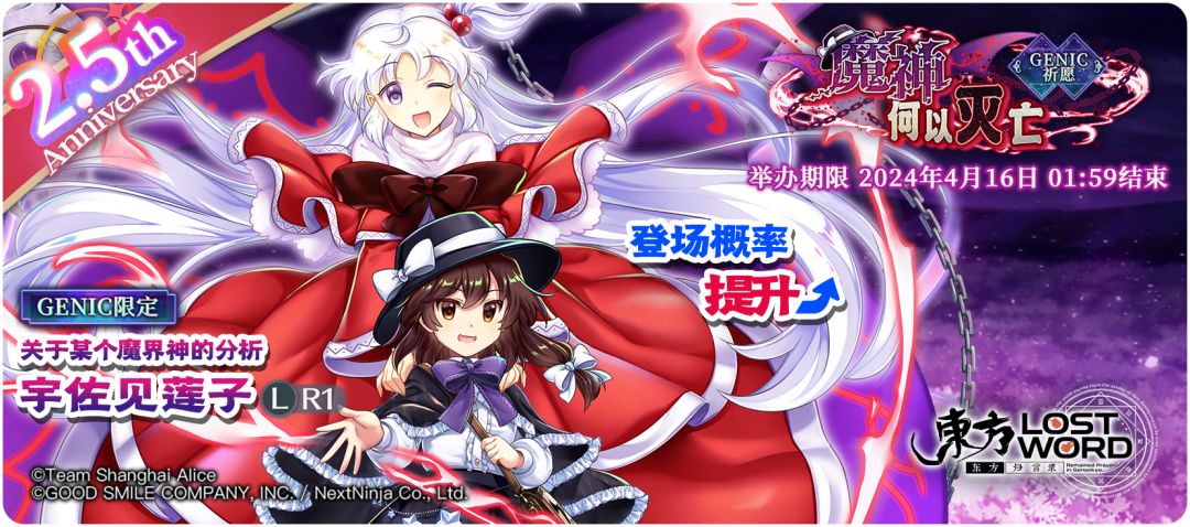 ✨角色概率UP:「[关于某个魔界神的分析]宇佐见莲子」登场概率提升的GENIC限定祈愿!