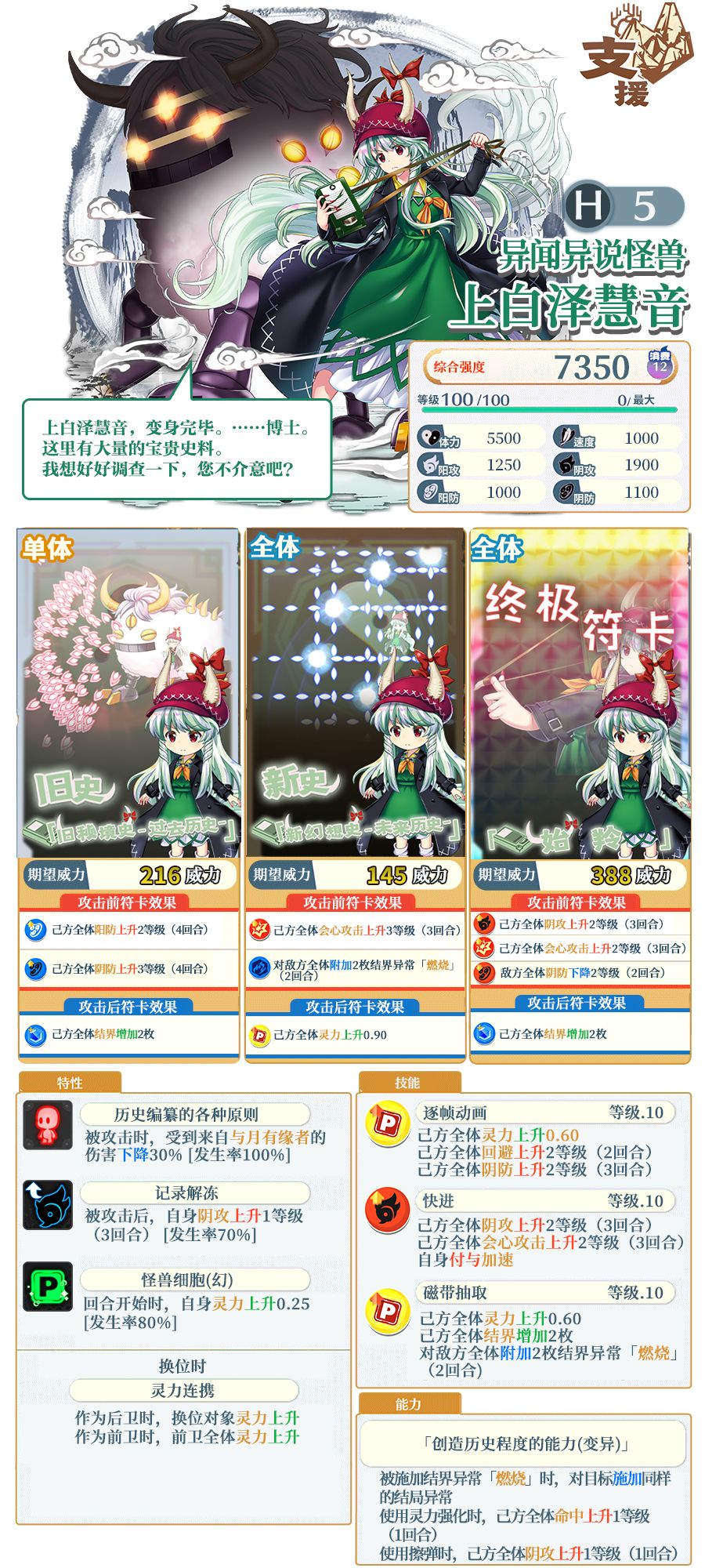 ※「异闻异说怪兽 上白泽慧音」需要使用同名伙伴或者「天之替身」进行界限突破。不同泛异记号的伙伴、「天之替身」以外的替身无法对其进行界限突破。
